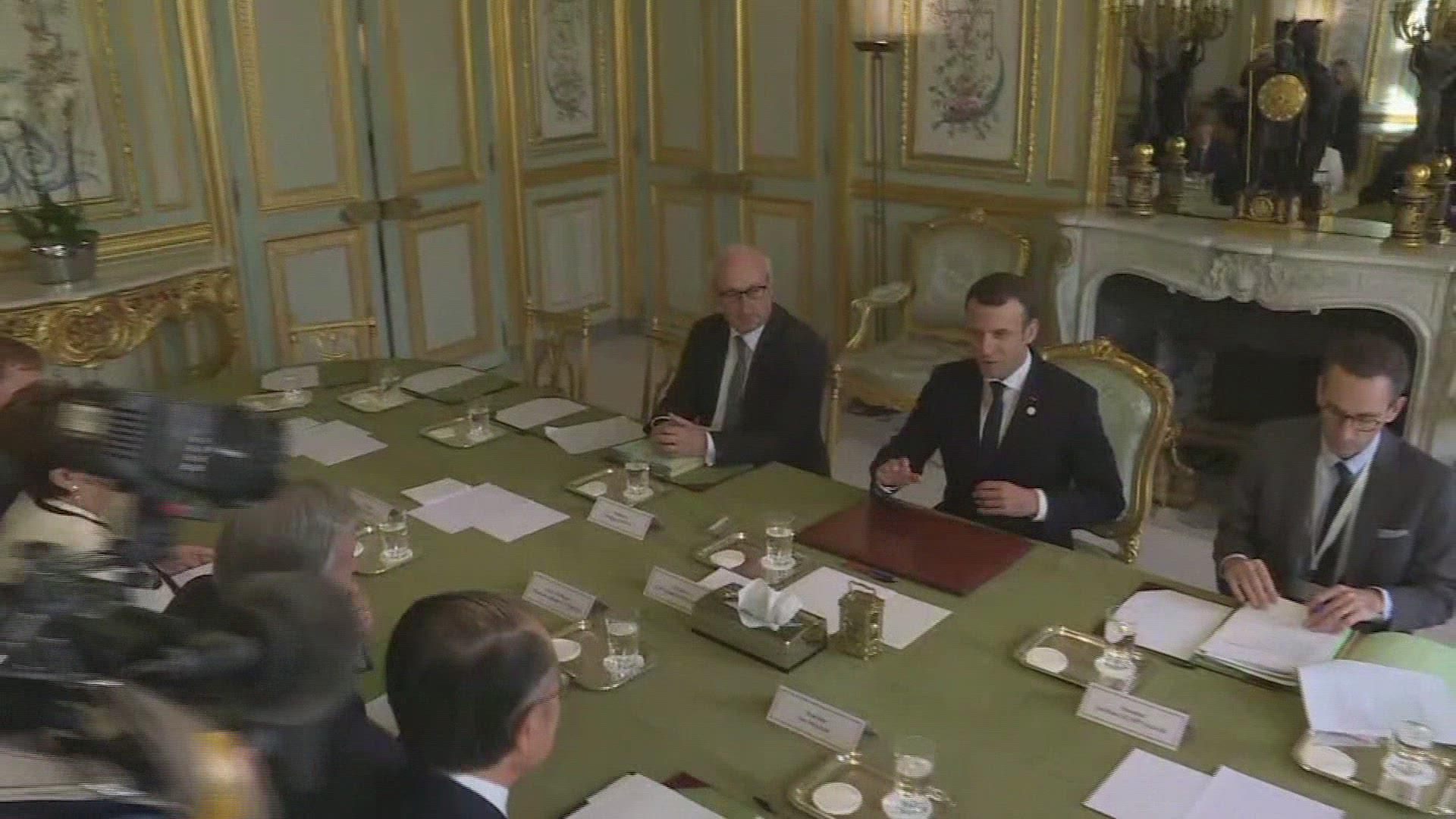 French President Emmanuel Macron welcomes UN Secretary-General Antonio Guterres to the Elysée Palace ahead of the start of the UN's "Generation Equality Forum" on gender equality, the largest international conference on the theme since 1995. IMAGES