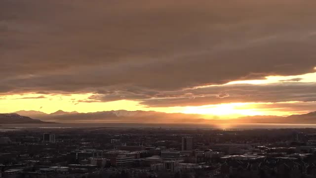 > Sunset reflection in Utah Lake during colorful display