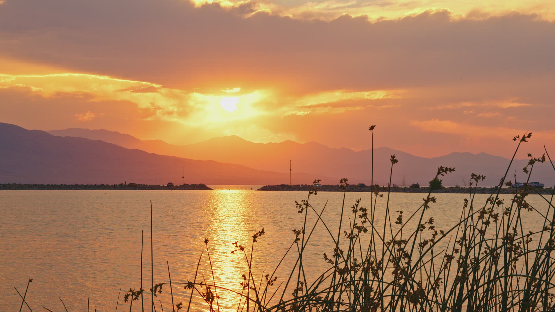 Sunset reflection in Utah Lake during colorful display