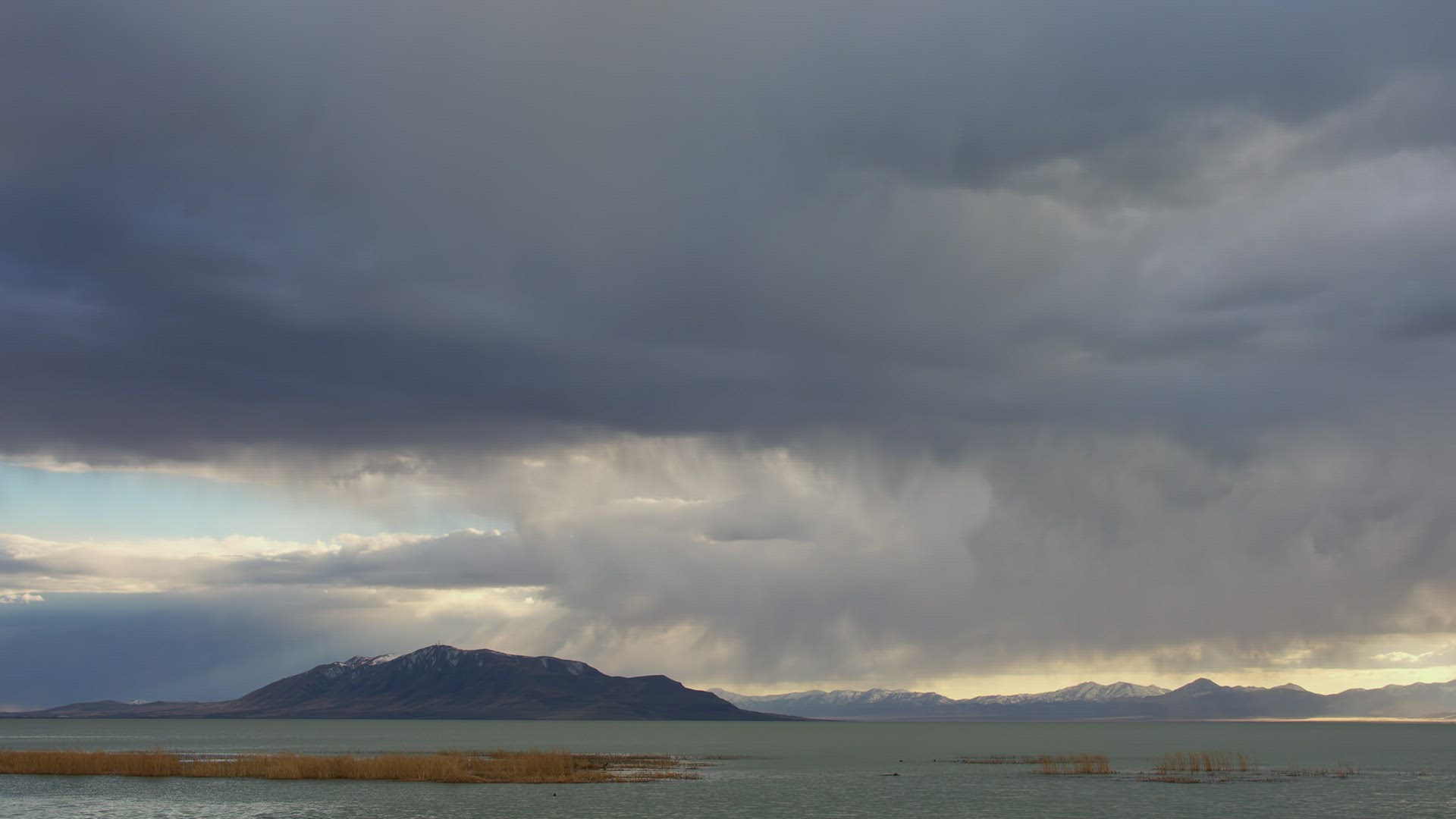 Storm clouds rolling through the sky over Utah Lake looking towards West Mountain.