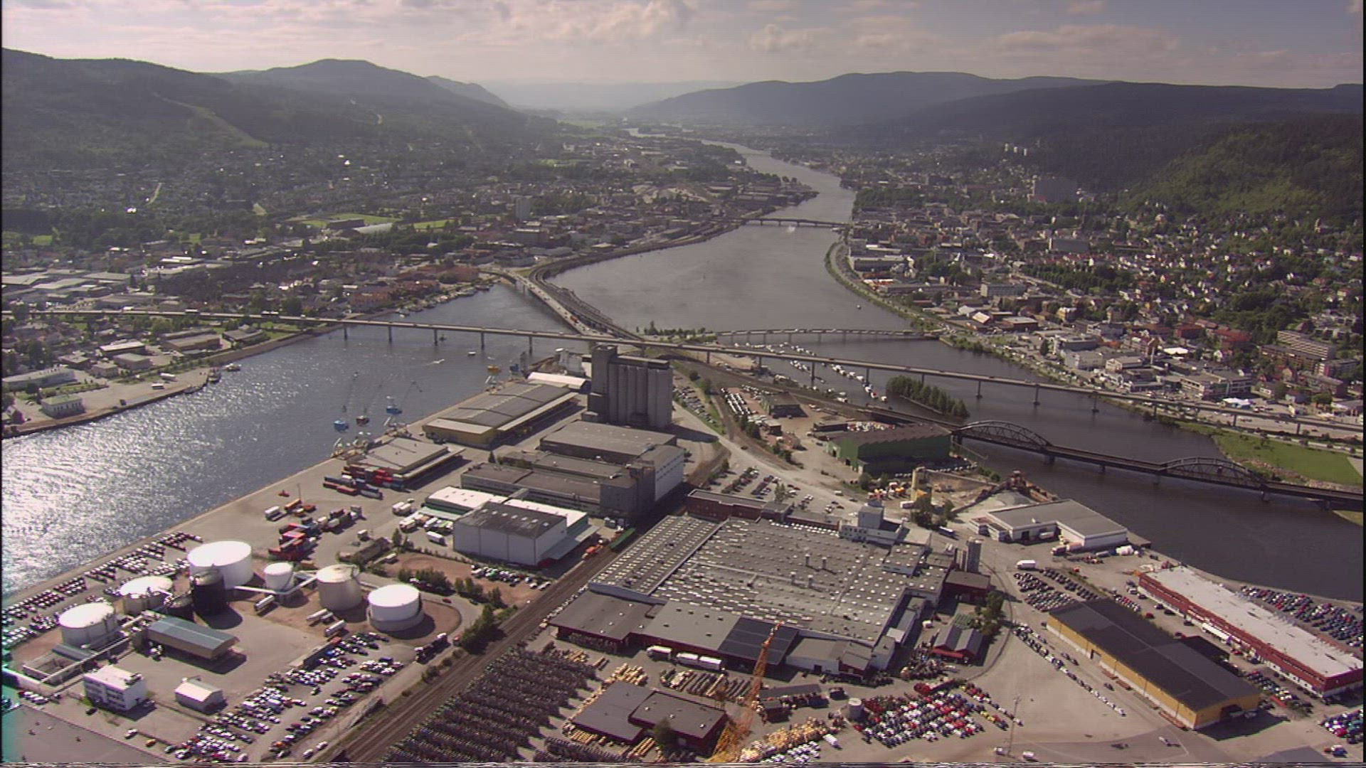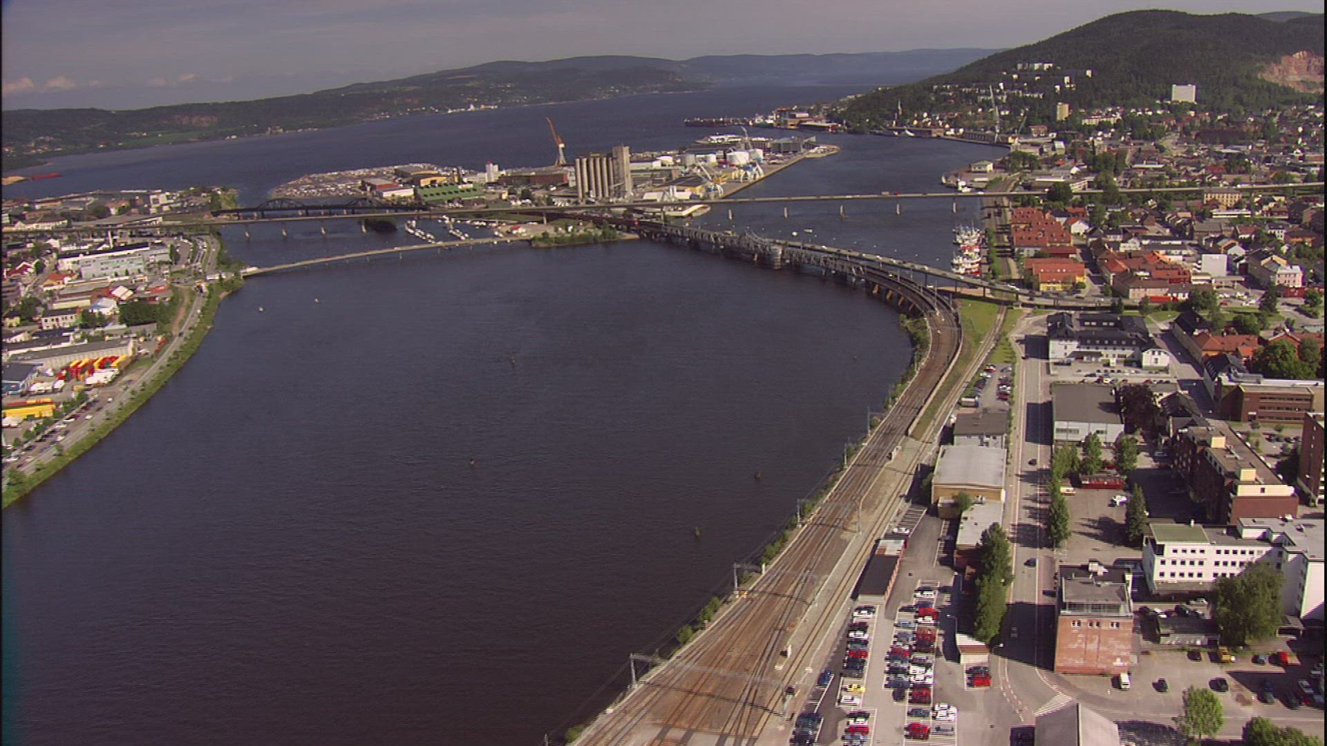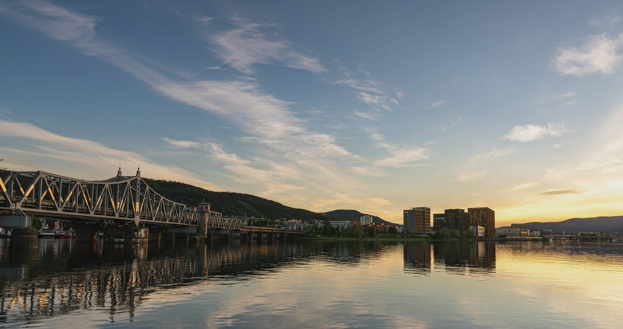 Time Lapse of a sunset at Drammen in southern Norway with the Drammensfjord river and the bridge Bybrua