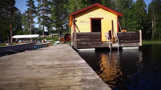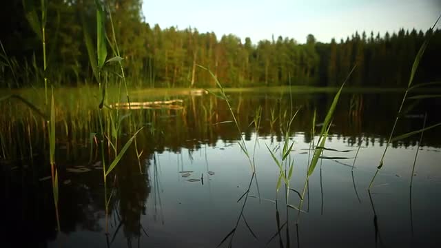 drone shot - flying close to lake surface against islet - evening shot