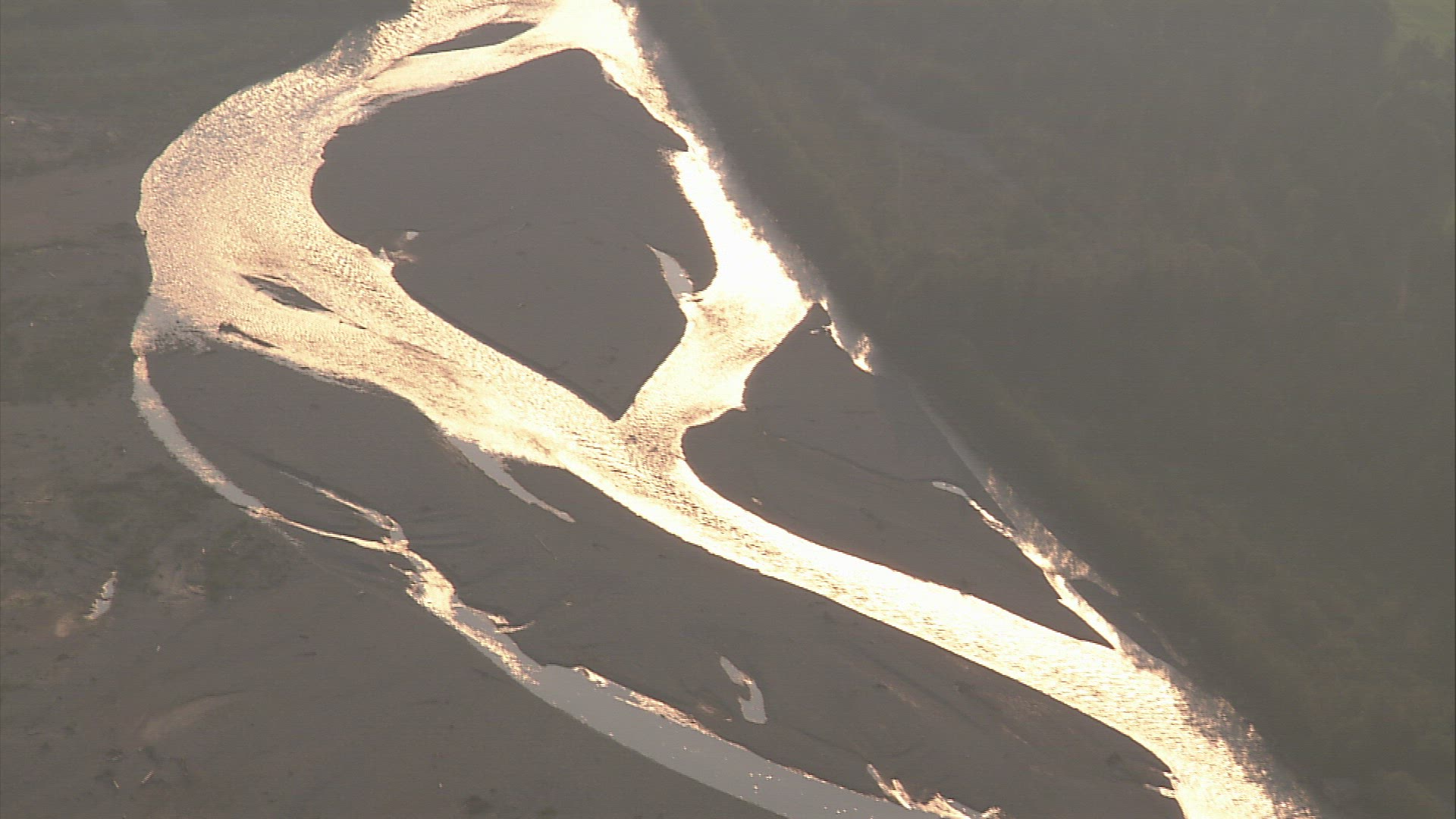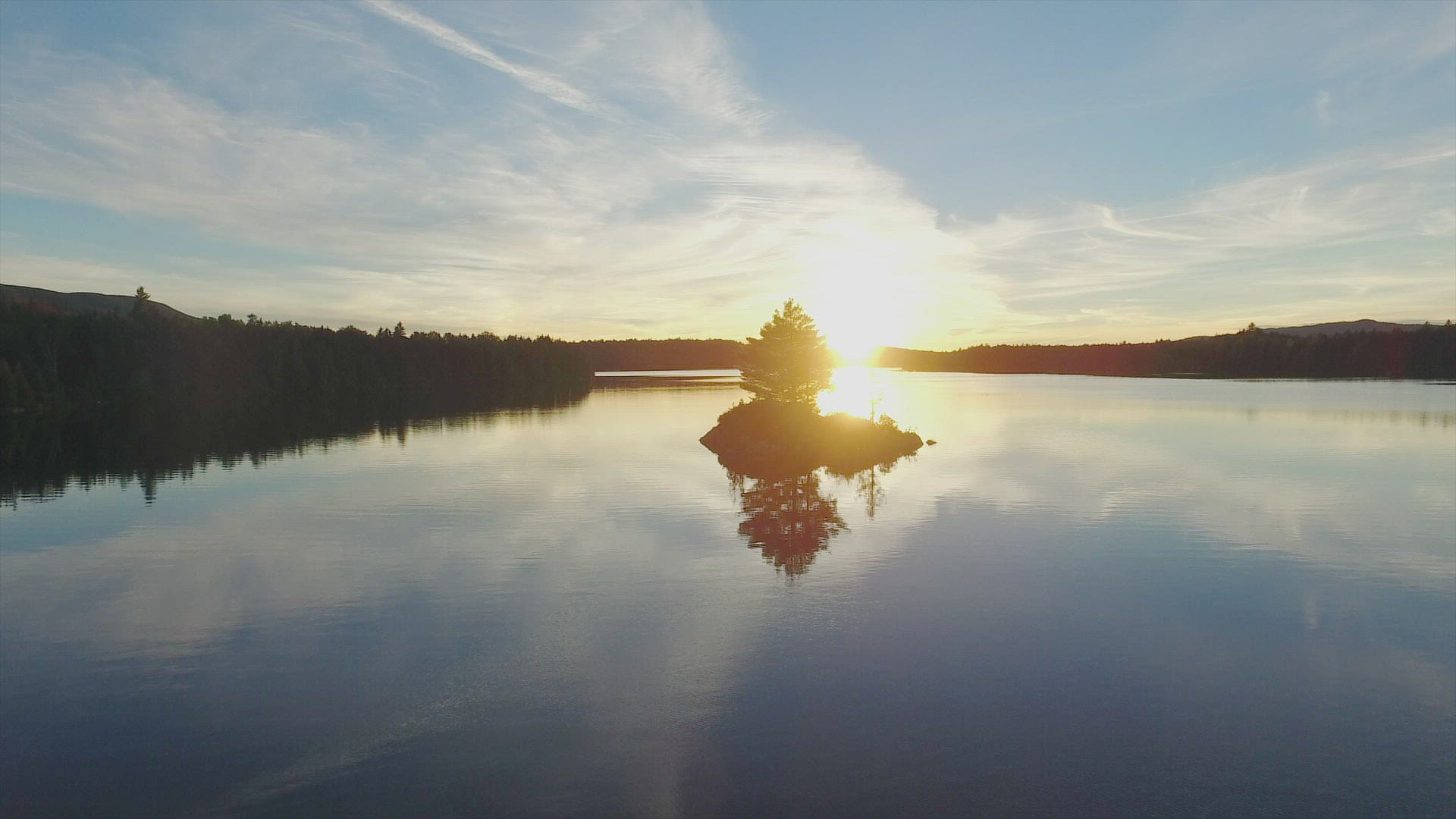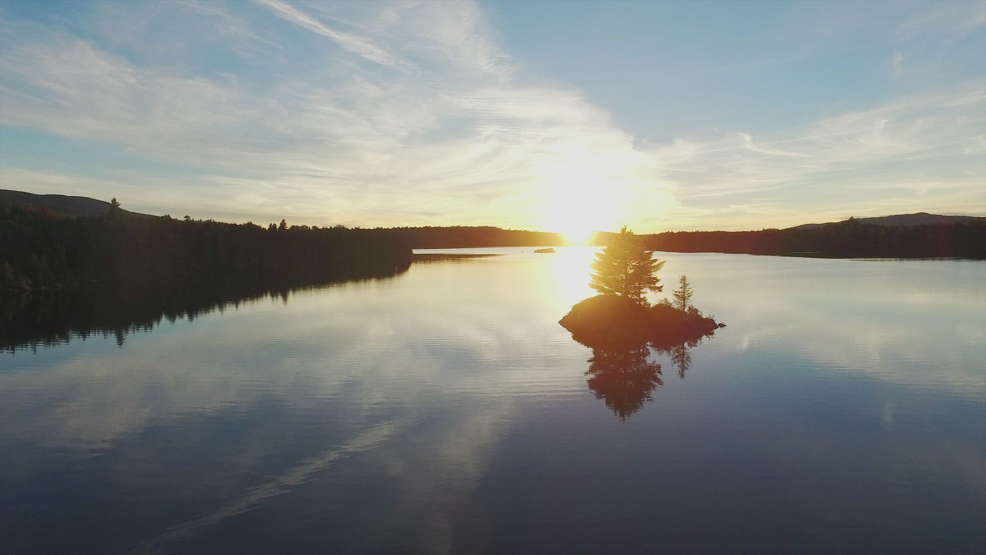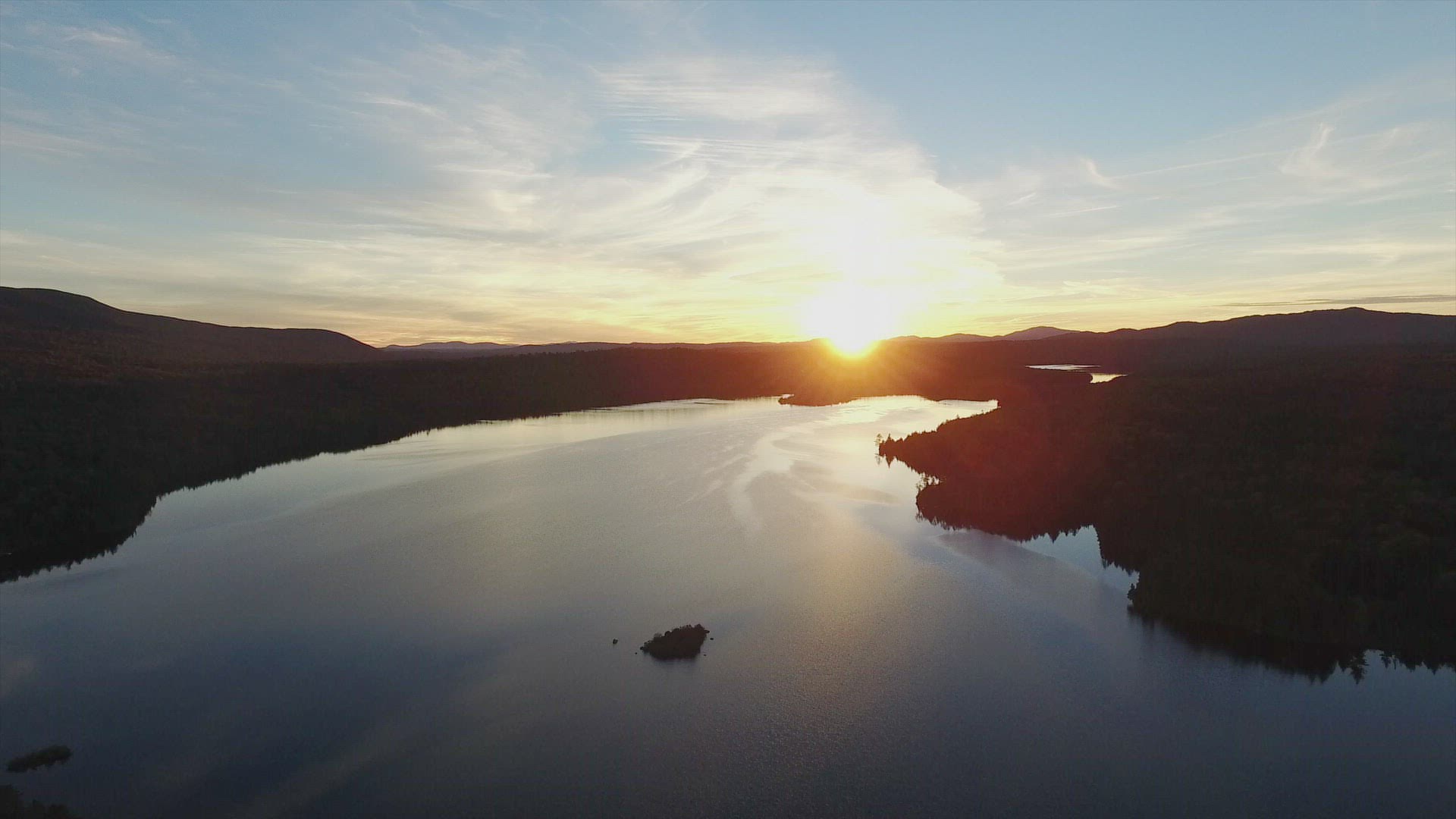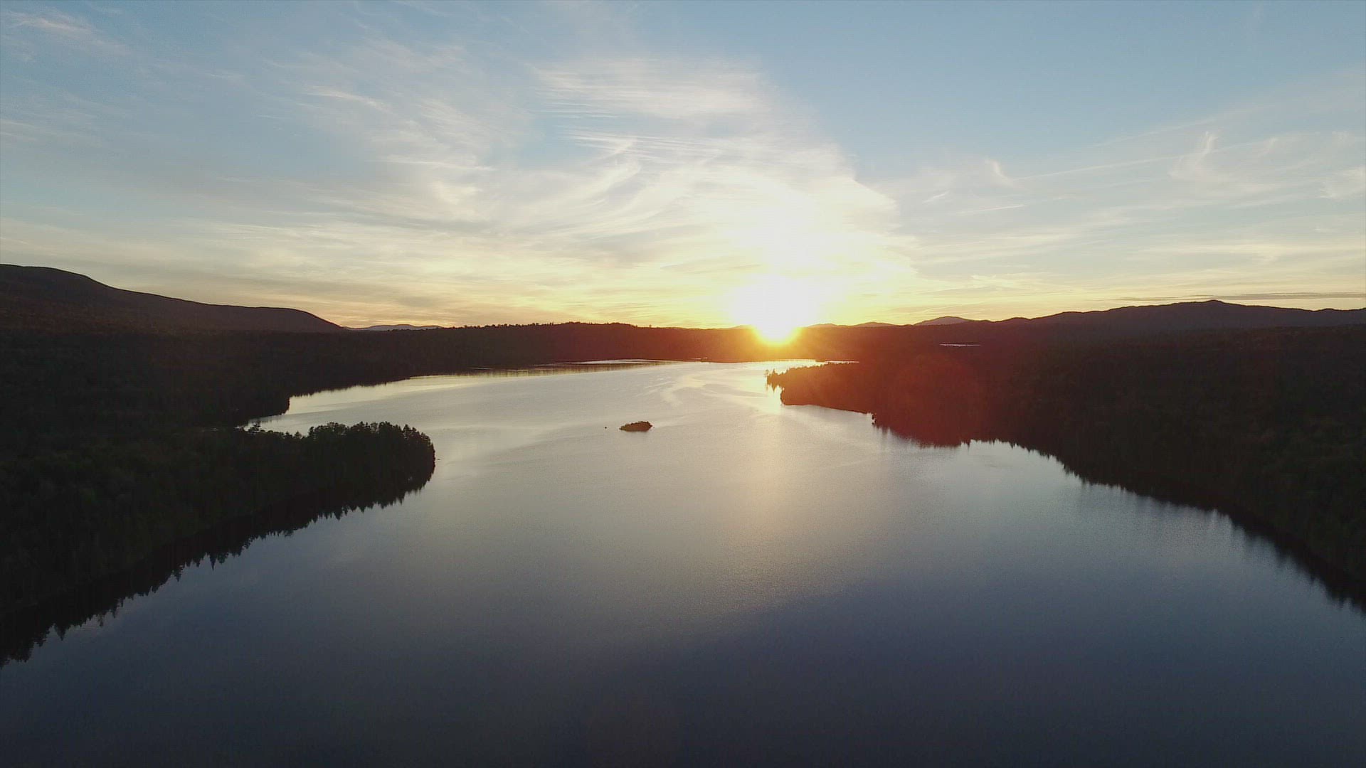 Aerial Drone Shot Of The Lake At Sunset, Cinematic Fly Over above the lake during beautiful sunset