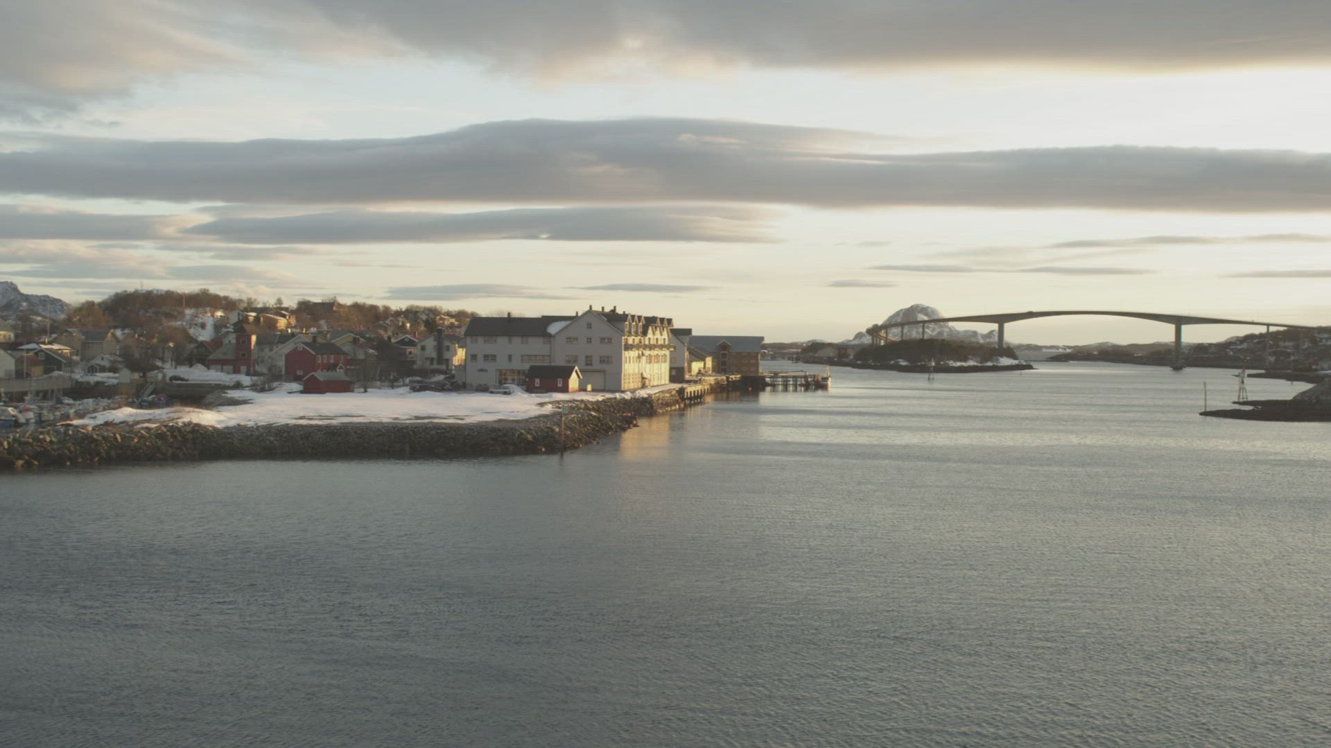 > Aerial view dramatic sunset over Penang Second Bridge with car traffic