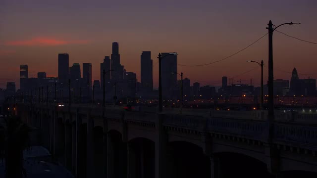 Aerial dramatic highway light of Penang Second Bridge with dramatic twilight sunset colorful sky.