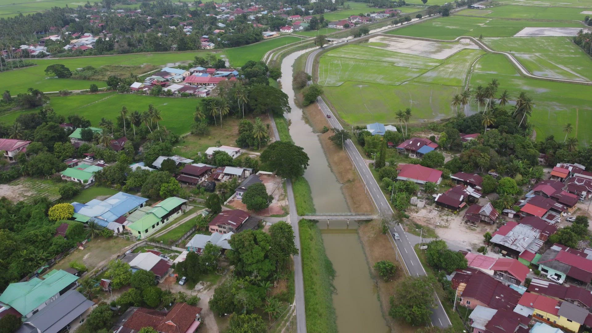 2130697 - Fly above country side road at tropical coconut farm