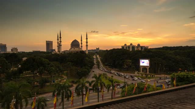 442297 - A majestic sunset time lapse overlooking a mosque