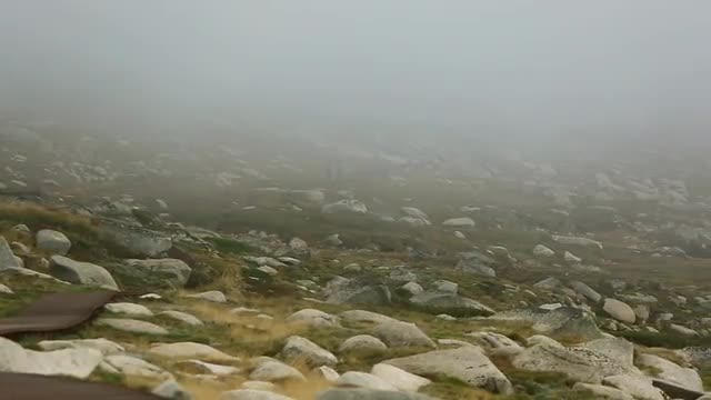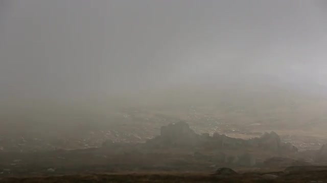 1063330 - Wispy clouds moving over snowcapped mountain peak