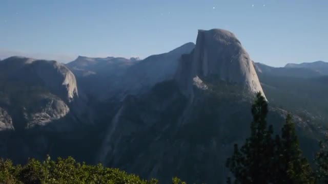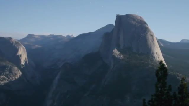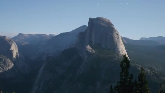Time lapse footage of moon shadow casting across Half Dome in Yosemite National Park, California