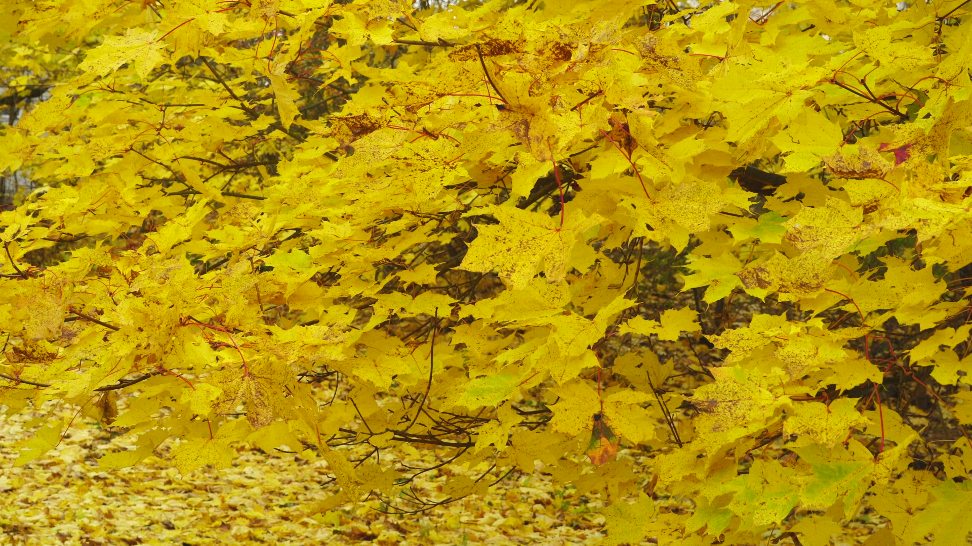 maple tree in autumn - leaves falling from tree