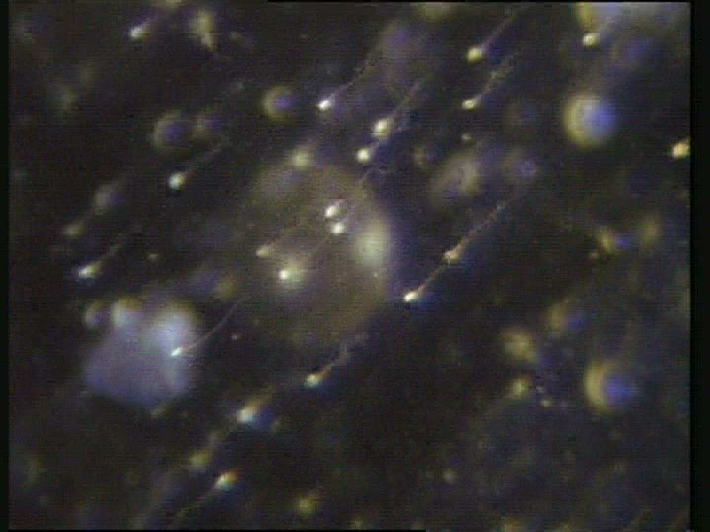 Sperm swimming and attempting to penetrate the protective layer around the egg. Microscopy