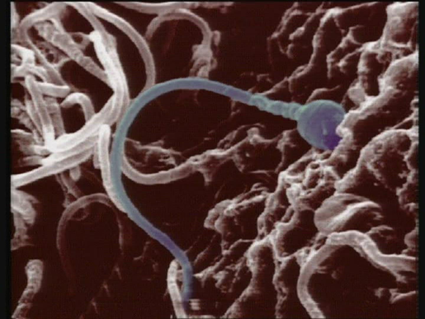 Sperm starting to penetrate egg wall. SEM. Fertilisation
