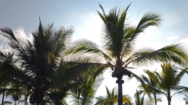 > 4K Time Lapse of Sun Shining Through Tropical Palm Trees in Hawaii
