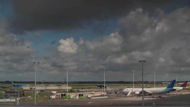 > Amsterdam, Netherlands, Timelapse - Amsterdam city buildings timelapse at canal waterfront during a