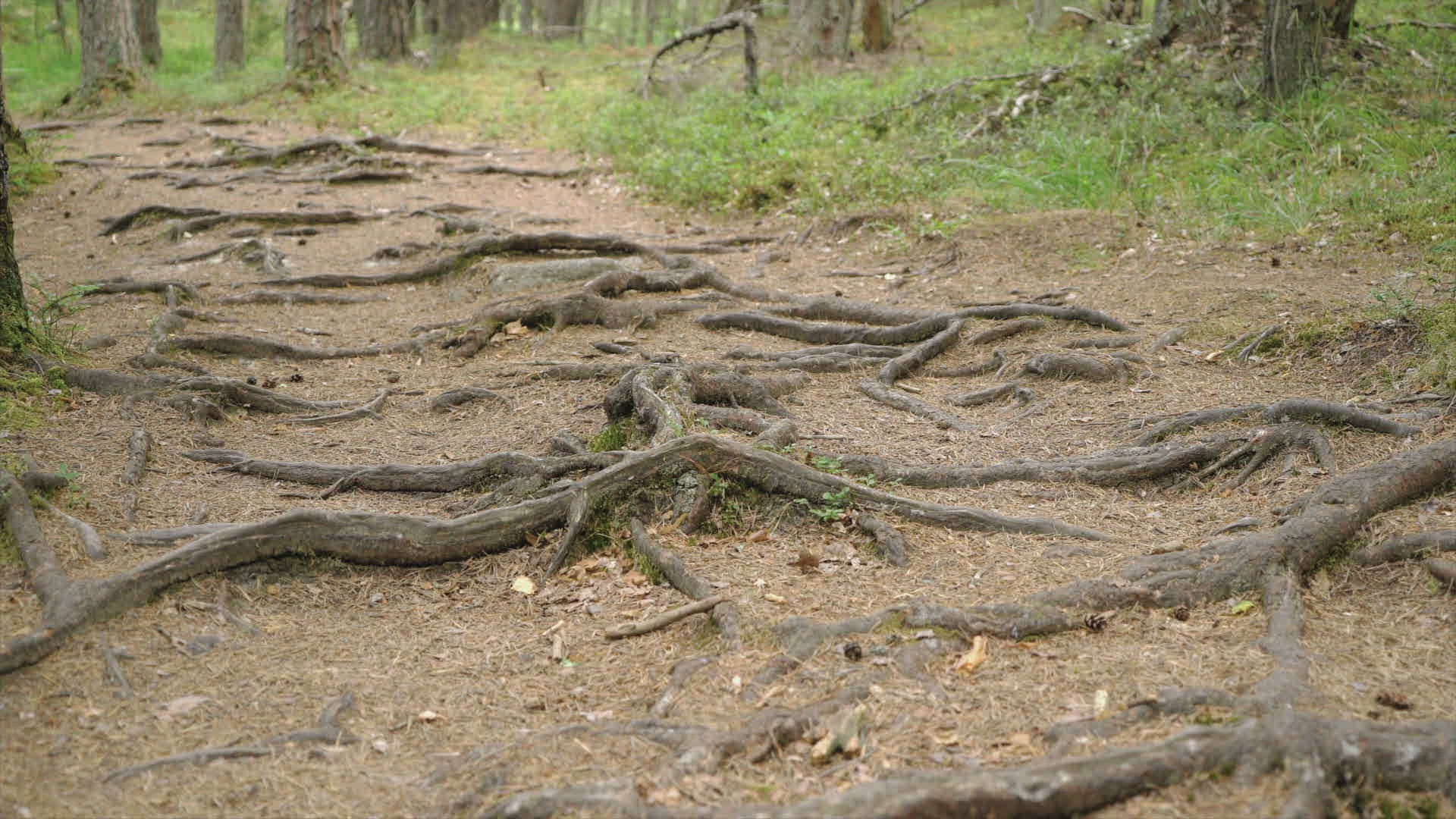 Low angle move at root tree of the tropical rainforest path at Malaysia.
