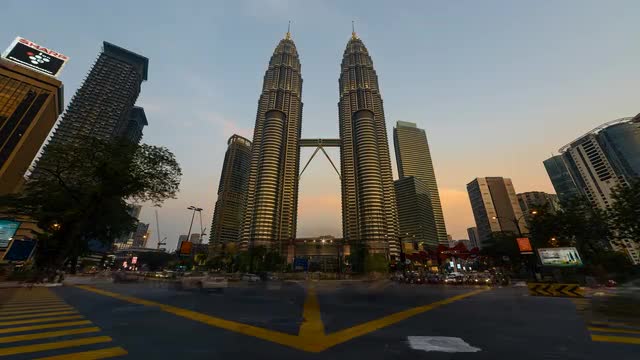 573495 - Timelapse view of traffic and pedestrians near The Petronas Towers in Kuala Lumpur, Malaysia