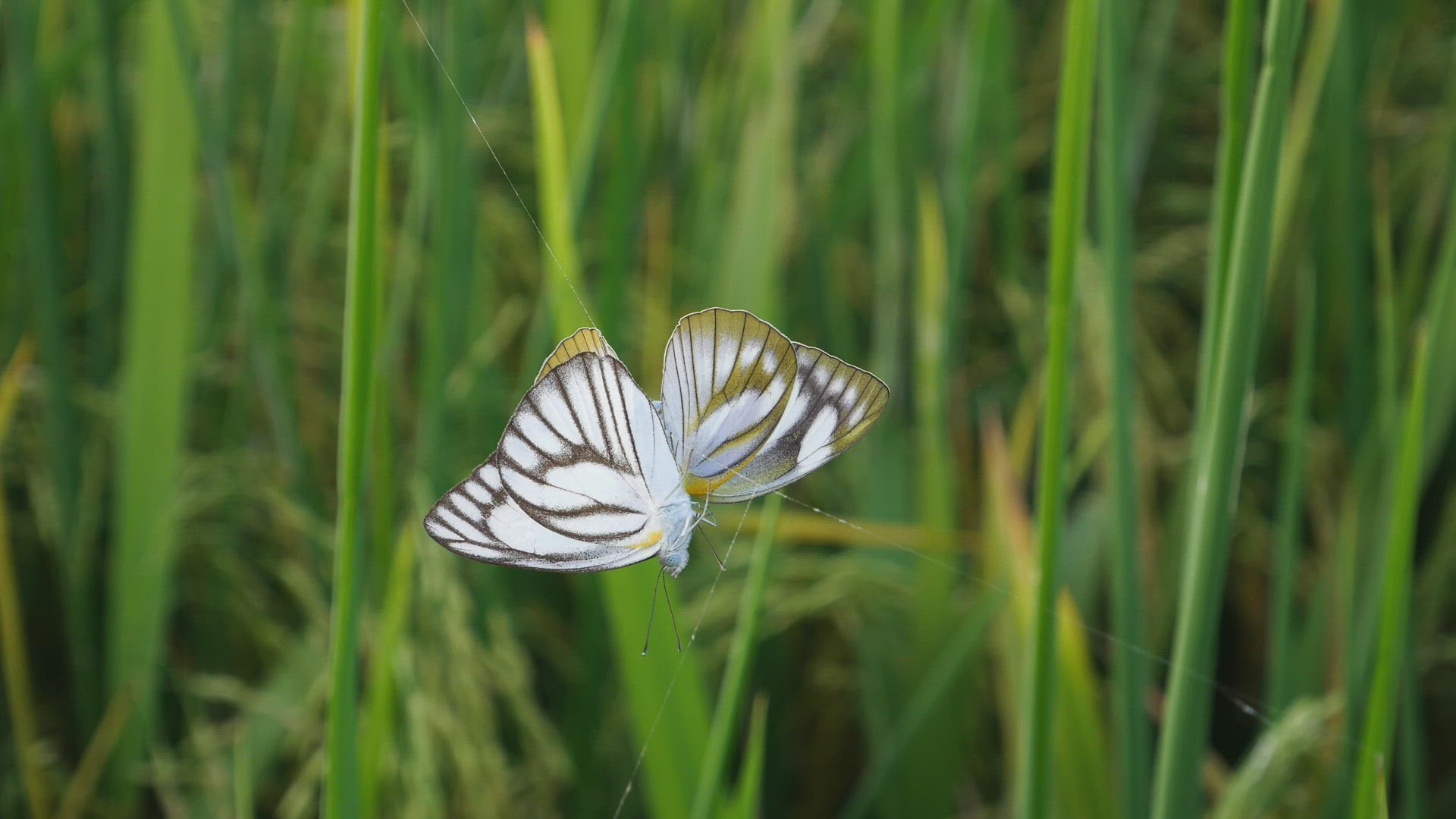 2139025 - Slow motion butterfly butterflies caught by spider net.
