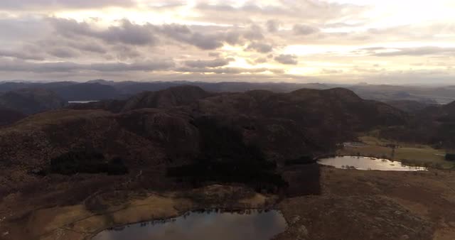 964708 - Aerial shot over amazing landscape at sunset with lake and beautiful sky in view