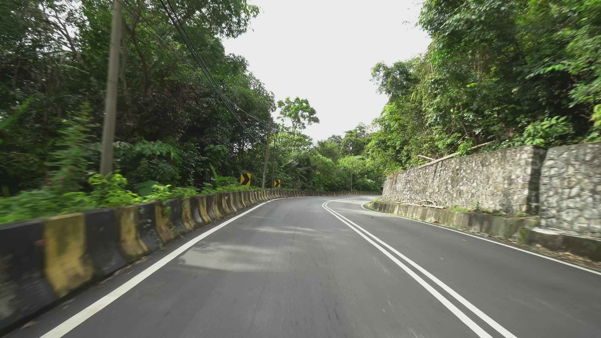POV asphalt road at forest view.