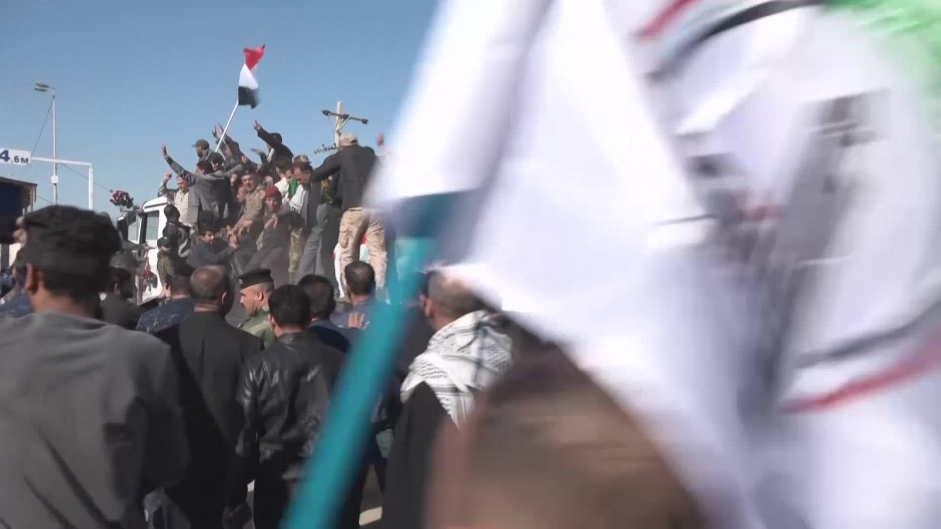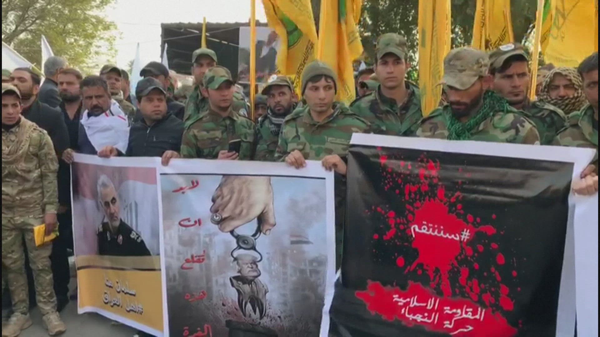 Iraq's Hashed al-Shaabi ex-paramilitaries hold a candle-lit vigil at Baghdad airport to honour their deputy leader and the top Iranian general Qasem Soleimani killed in a US drone strike two years ago. IMAGES