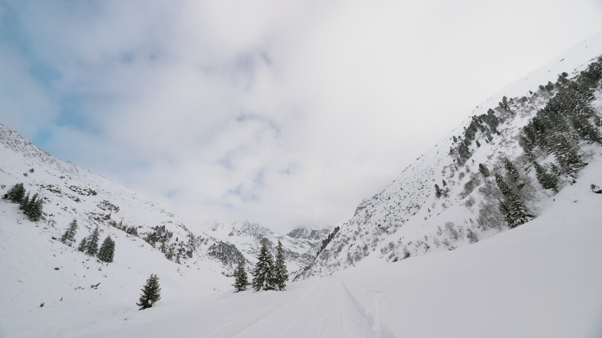 566107 - 4K Snowfall on Mountainside Panning Timelapse