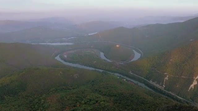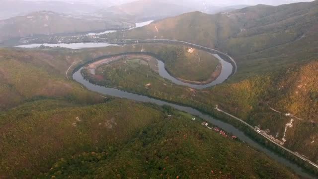 Aerial View Of Puelo River Meandering Through Lush Forest Lake District In Chile