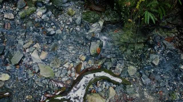 Aerial shot top down of river flowing through canyon