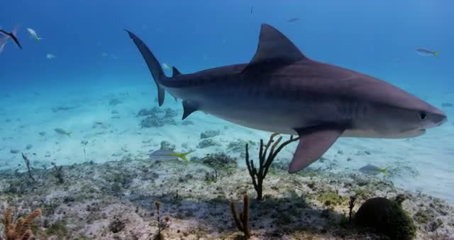Shark swims underwater.