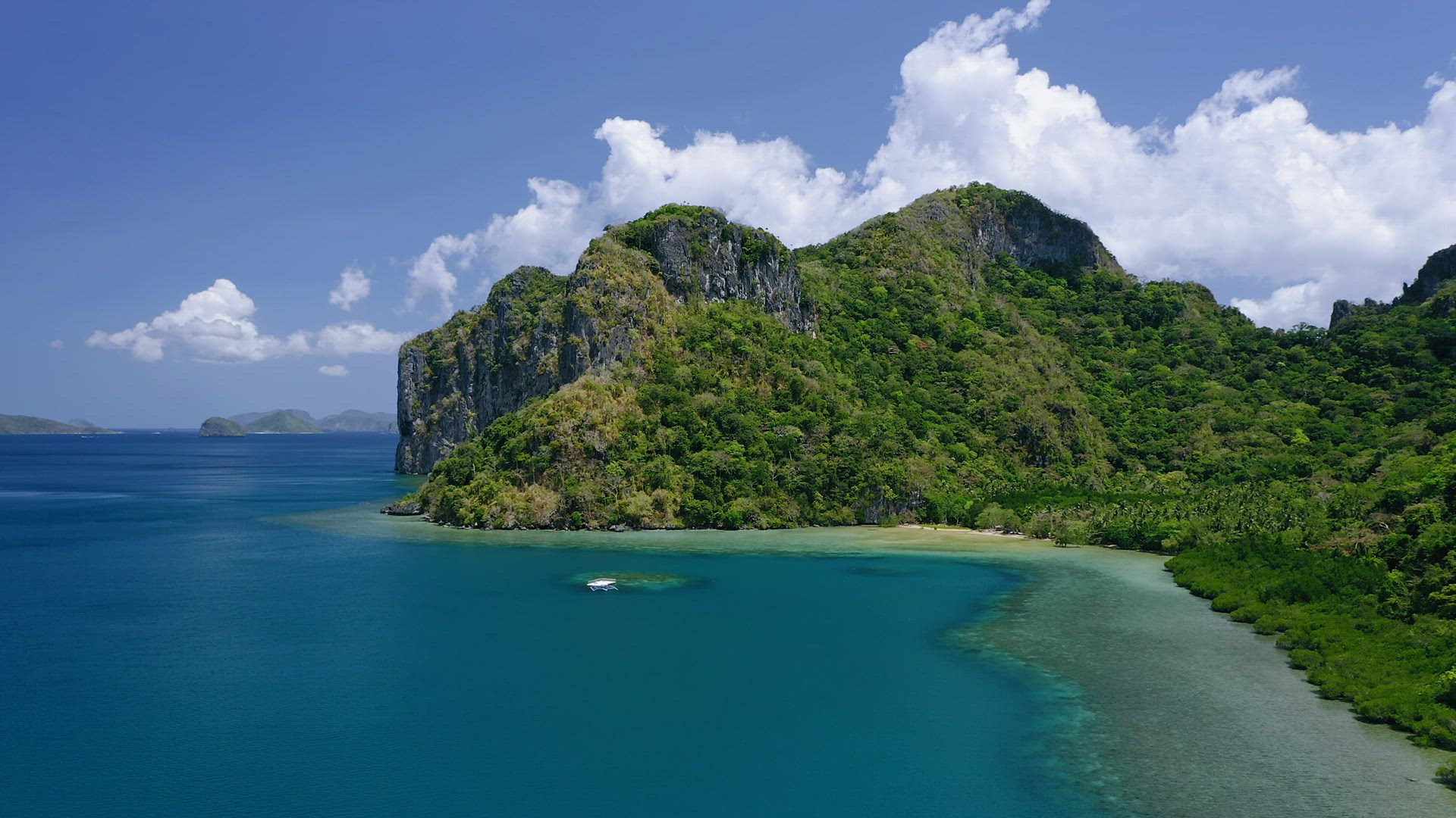 1129825 - Top down view of cloudy highway with cars and mountain with trees on left