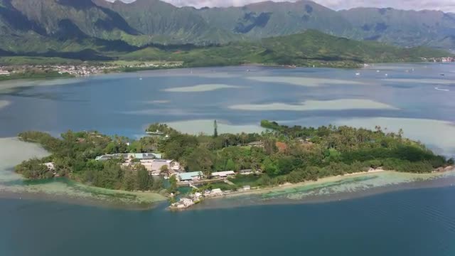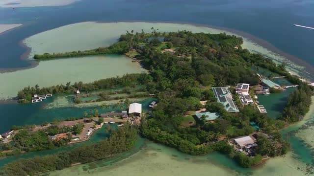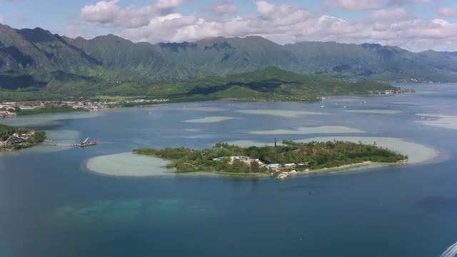 745609 - Man climbs coconut palm tree, wide handheld following shot