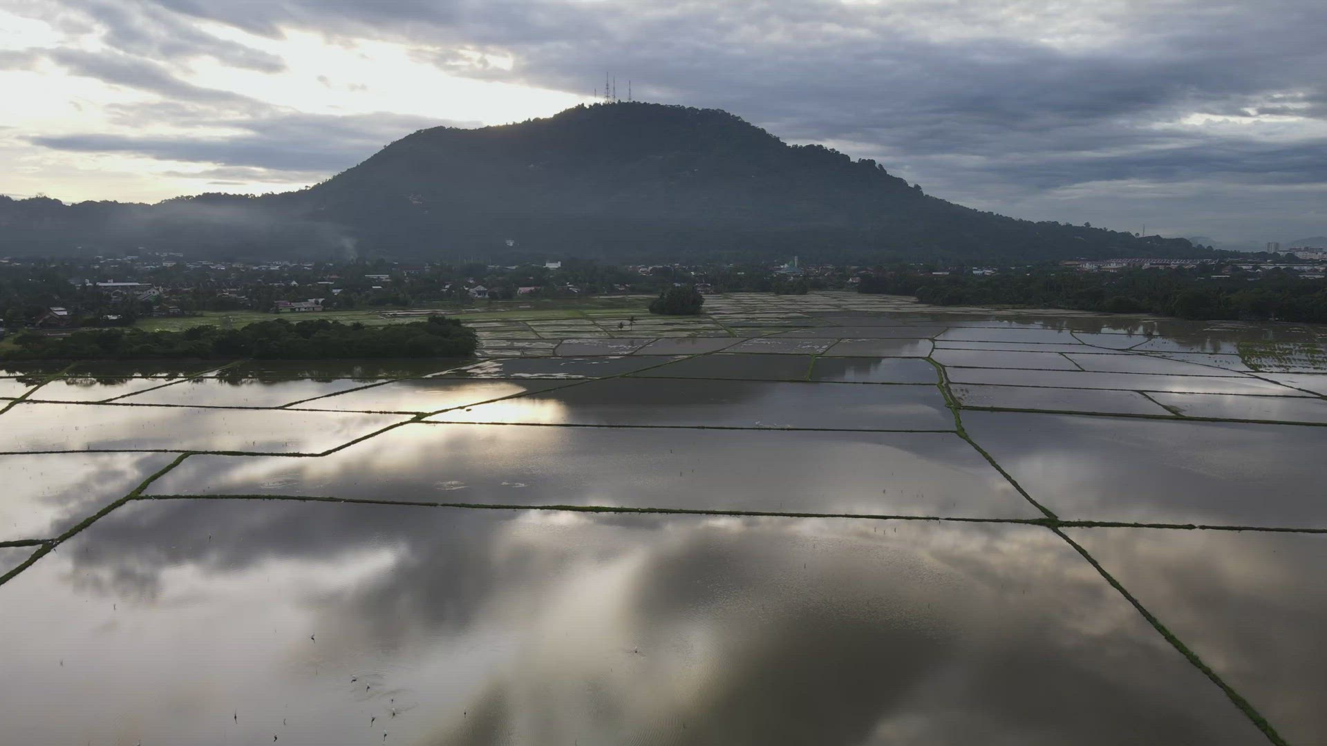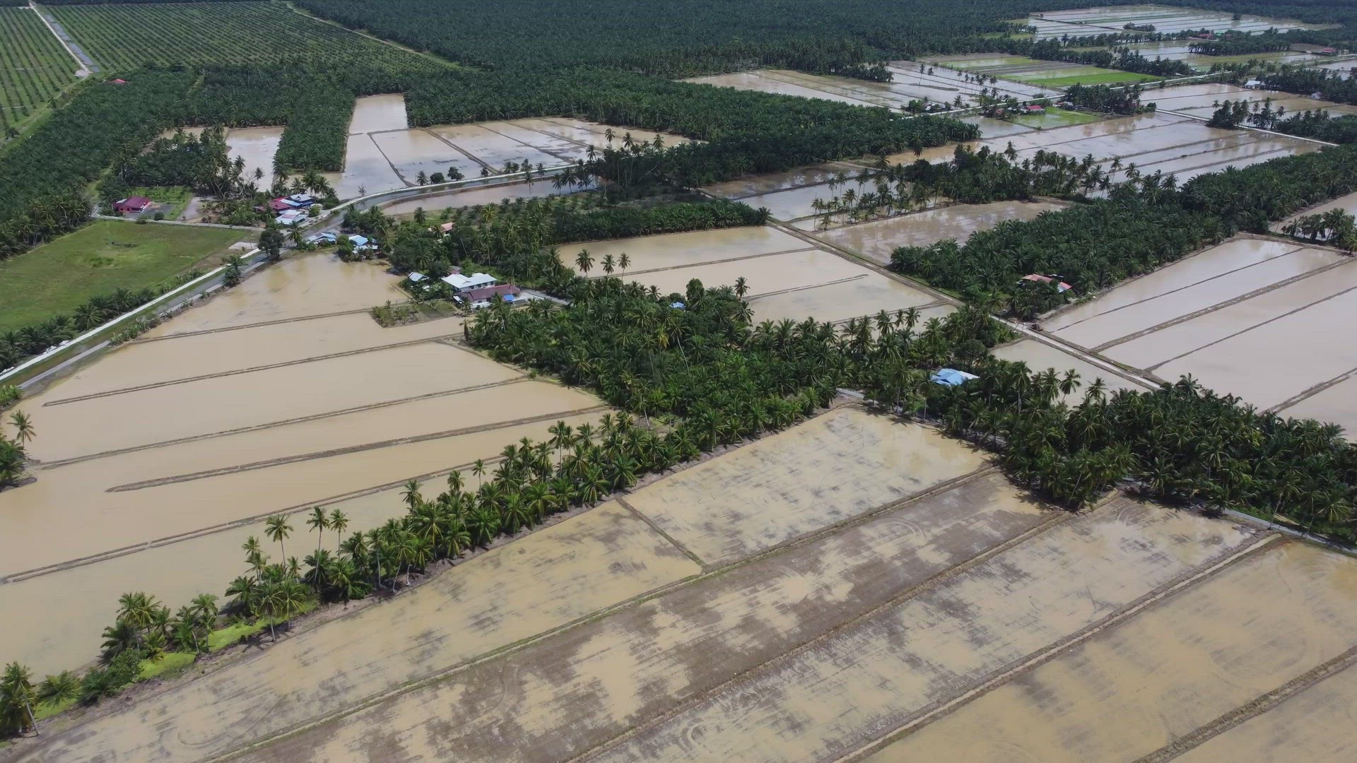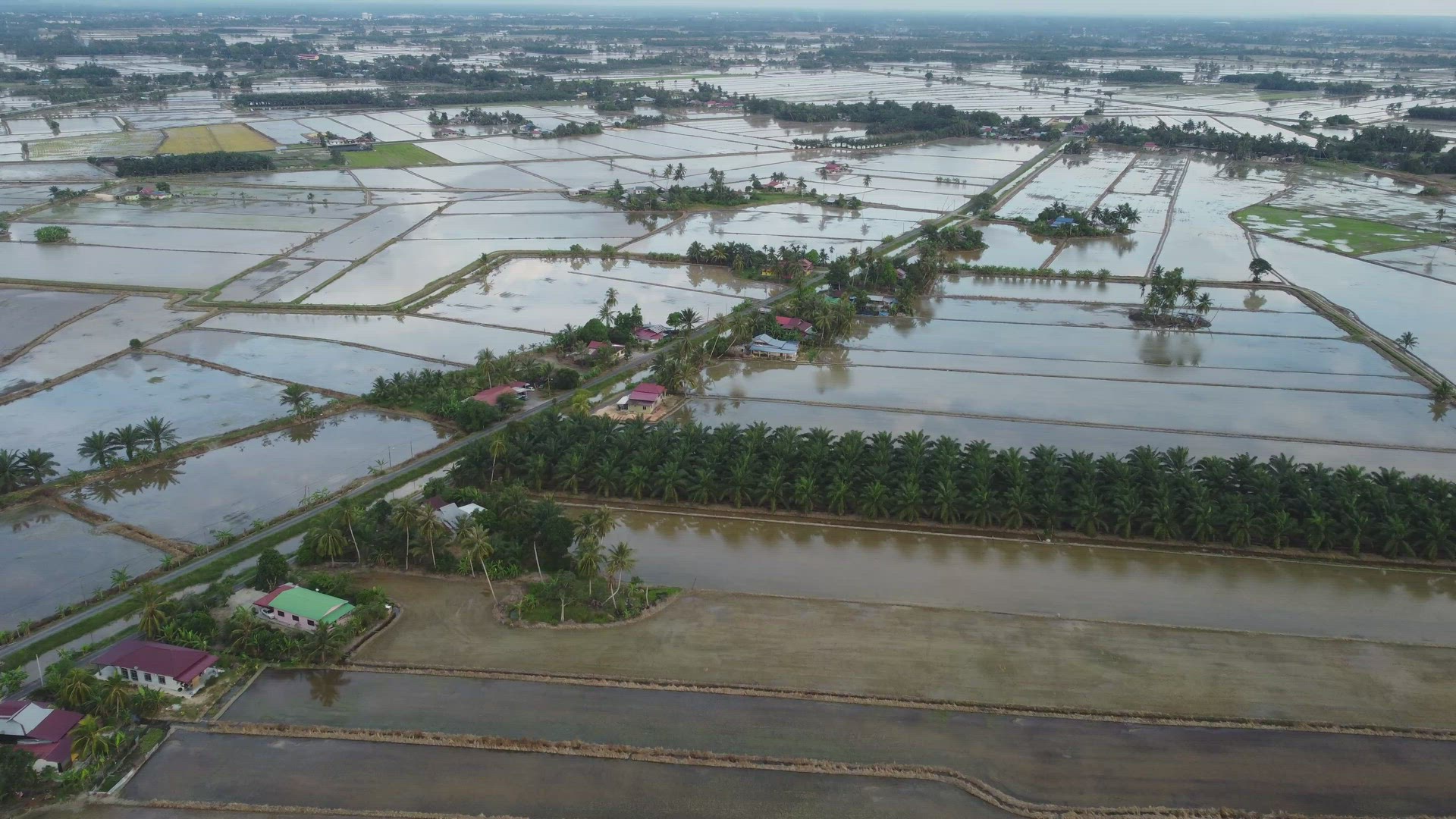 Aerial view paddy field at Kuala Kurau in cloudy day