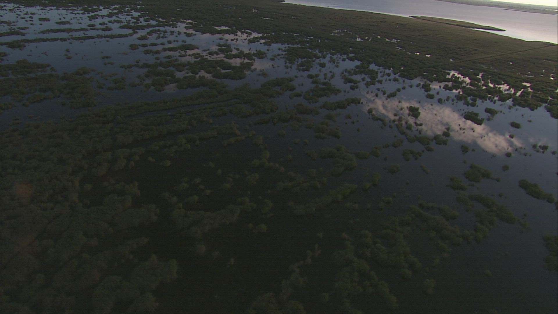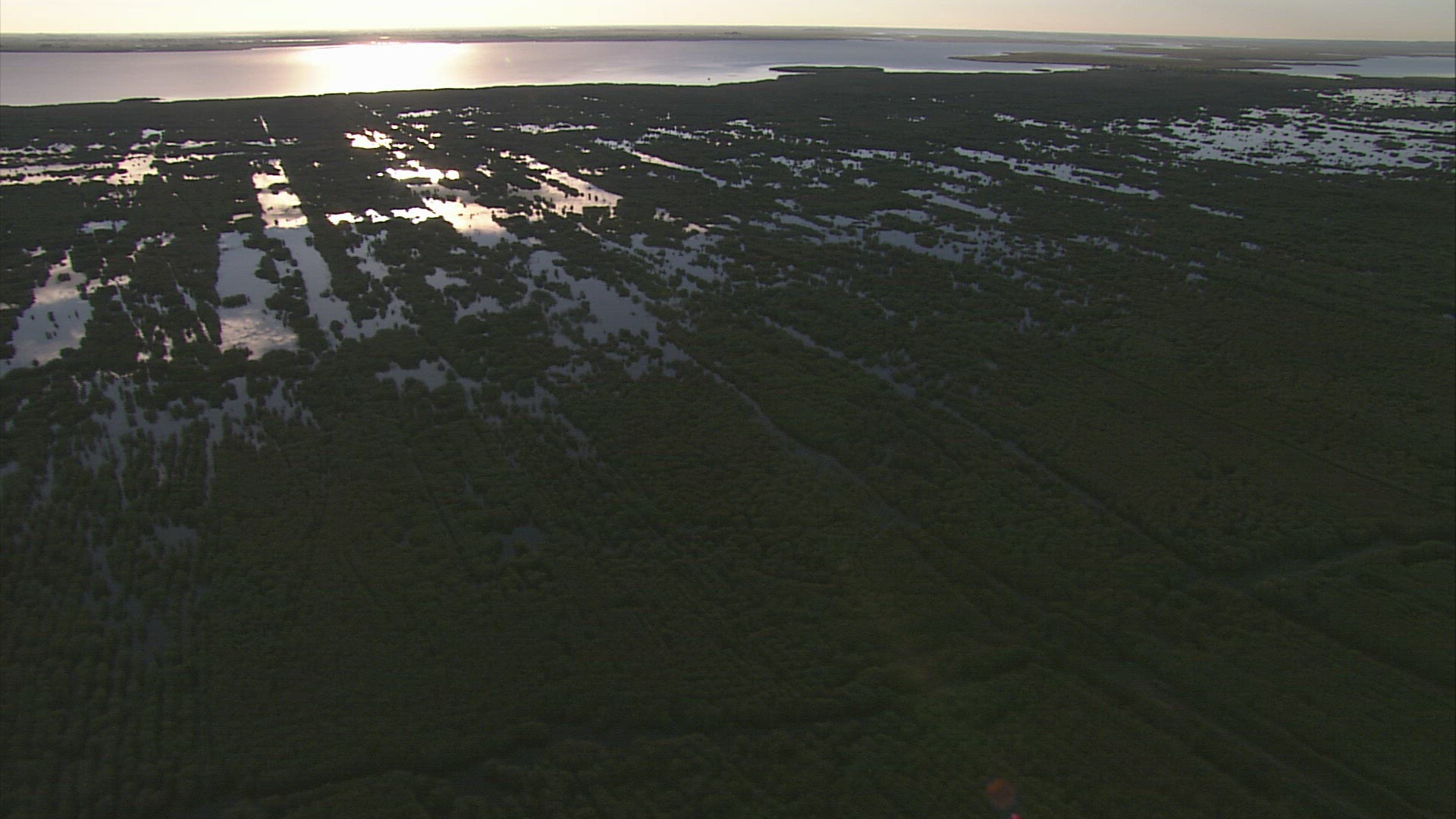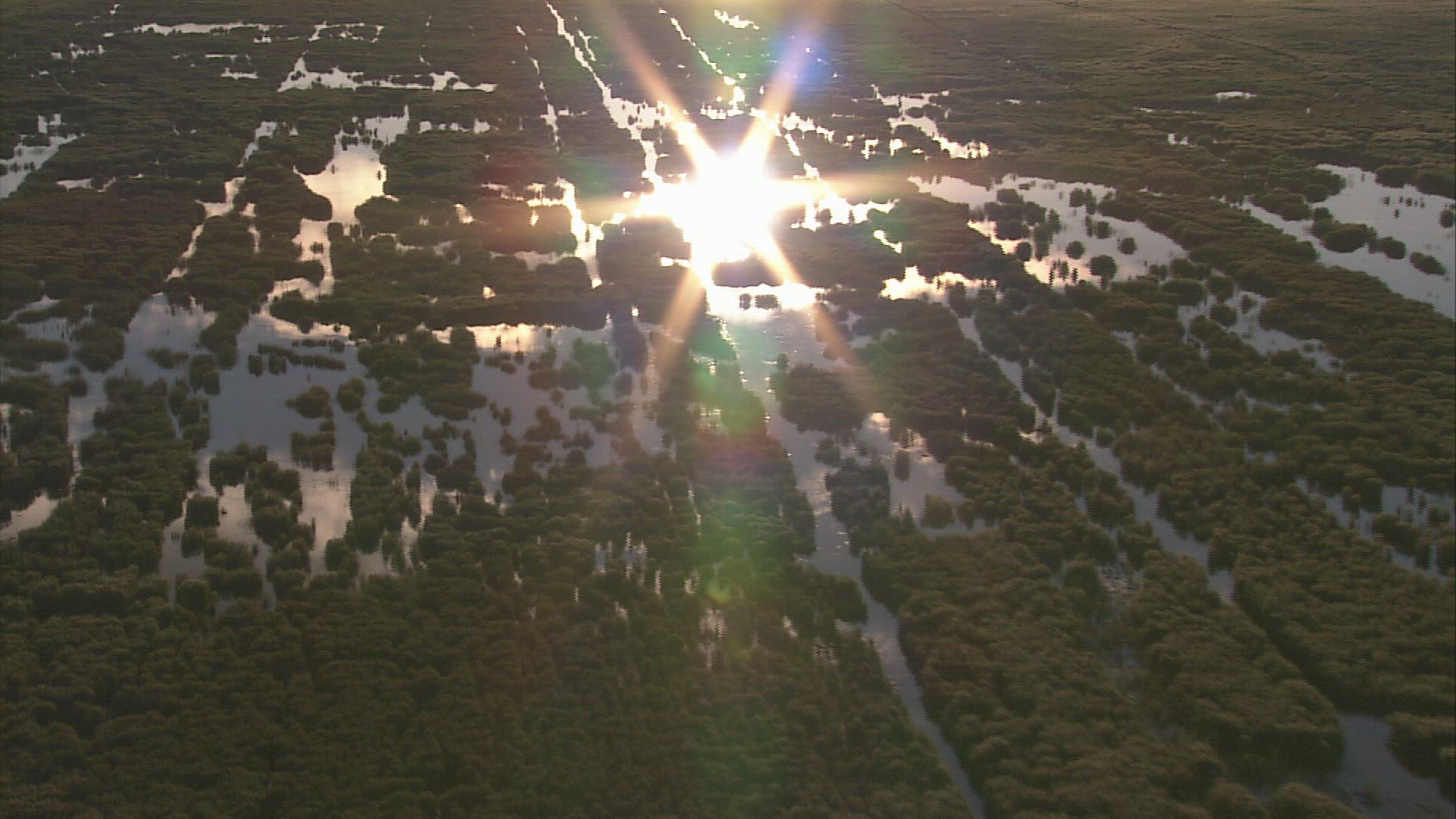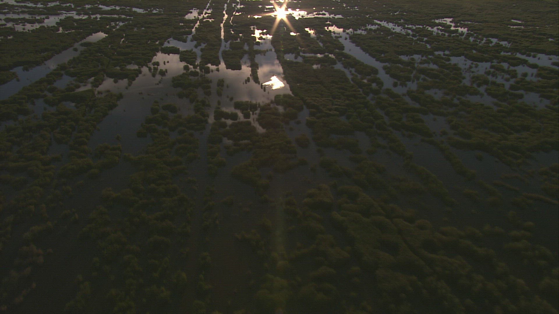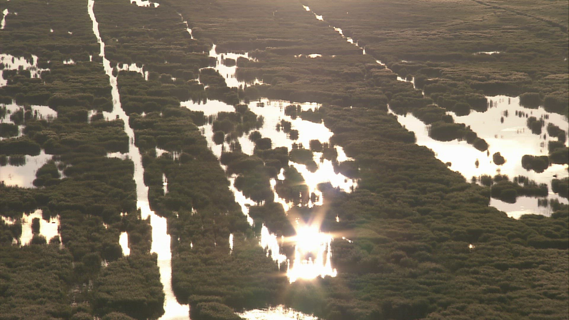 1081835 - aerial view of wetland of river Lech in the Lechtal Alps