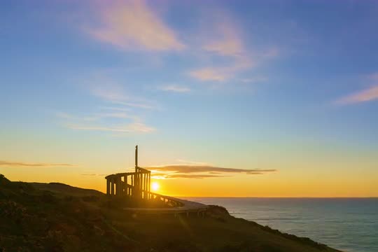 A timelapse shot from a ferry crossing the grey-green North Sea from Hook of Holland to Harwich showing spinning wind turbines and smokey chimneys on the harbour horizon and tugs and barges zipping across an industrial seascape.