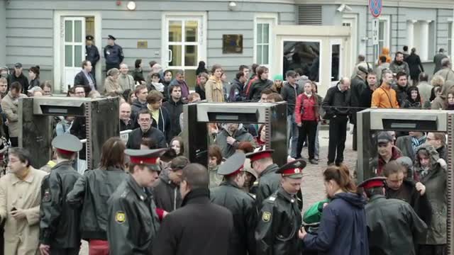 People gather in Moscow's Pushkin Square to protest against Russia's invasion of Ukraine. Protesters shout 'no to war!' as the Russian police detain them and take them away in police vans. IMAGES AND SOUNDBITES COMPLETE VIDI323V69D_EN