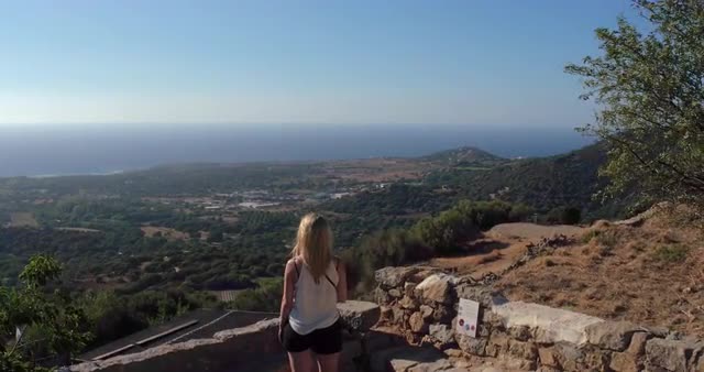 968693 - Video shot of beautiful girl enjoying view in Montemaggiore on a sunny day