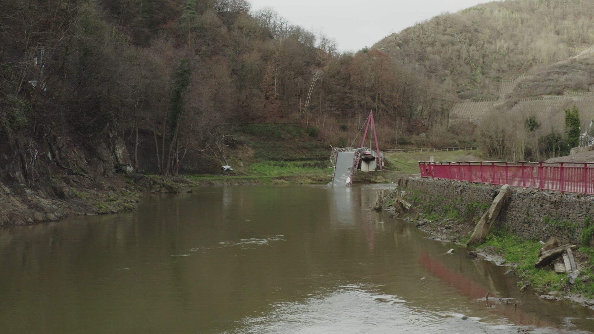 > Destroyed bridge in Ahr valley after flood