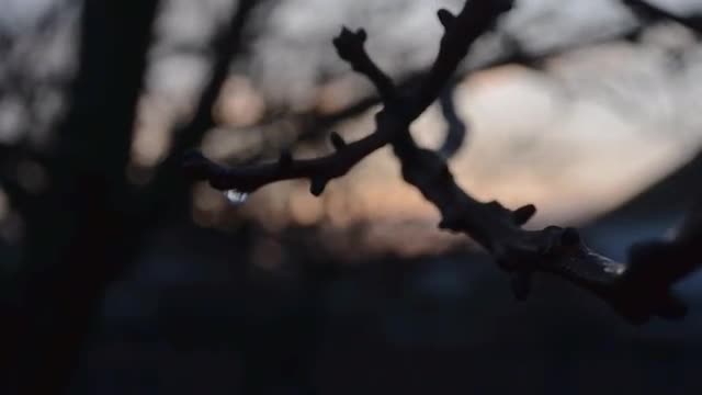 537046 - Leafless Branches of Trees That Fall Rain Drops Close up on a Background of Sunrise