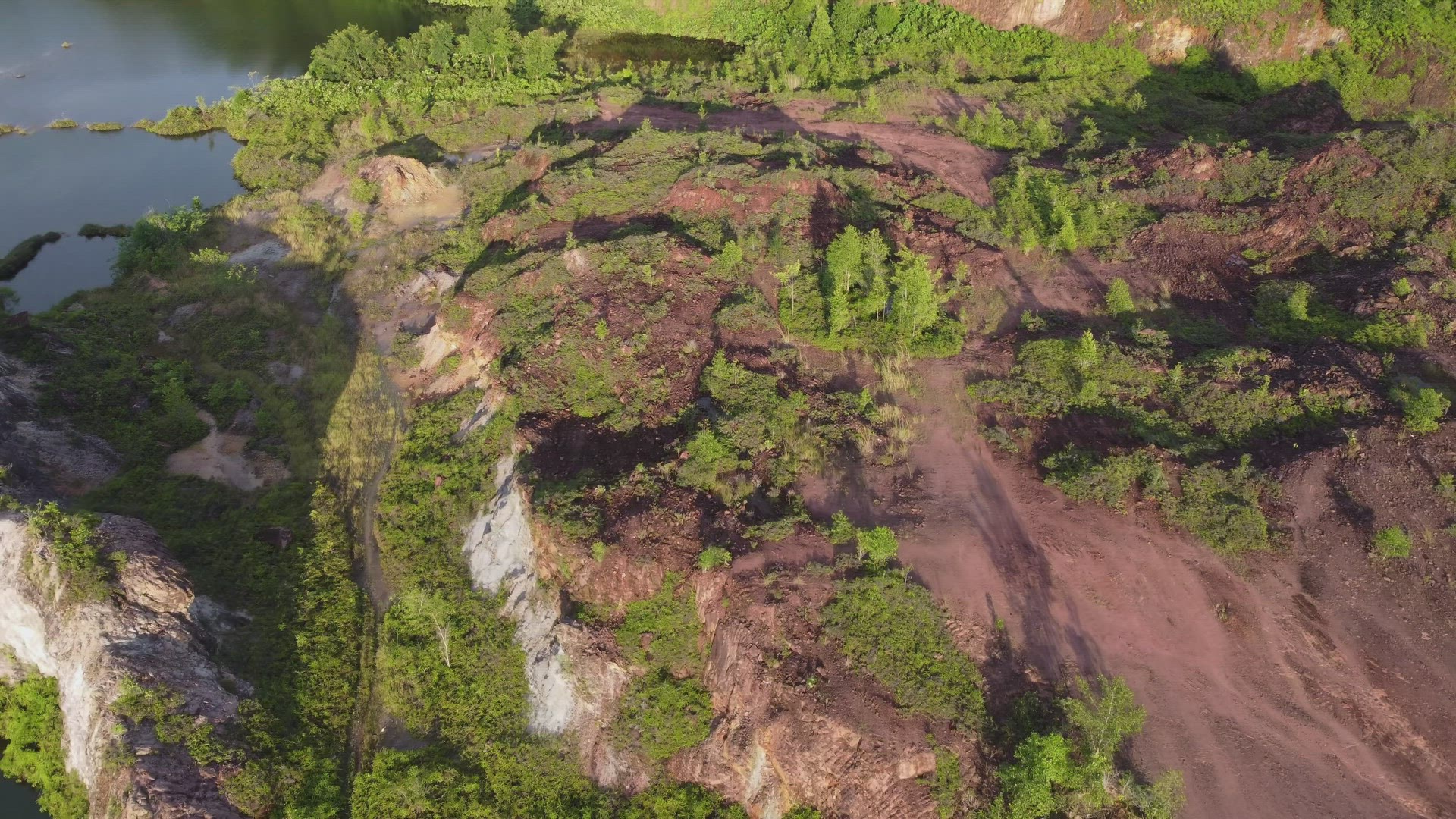 > Aerial view red dusty land of abandoned mining