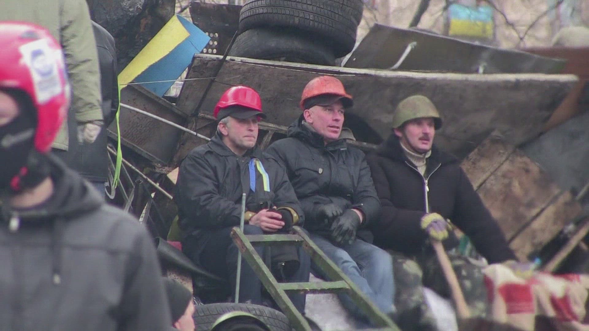 World peace with blue and yellow wave symbol Ukraine animation in black background