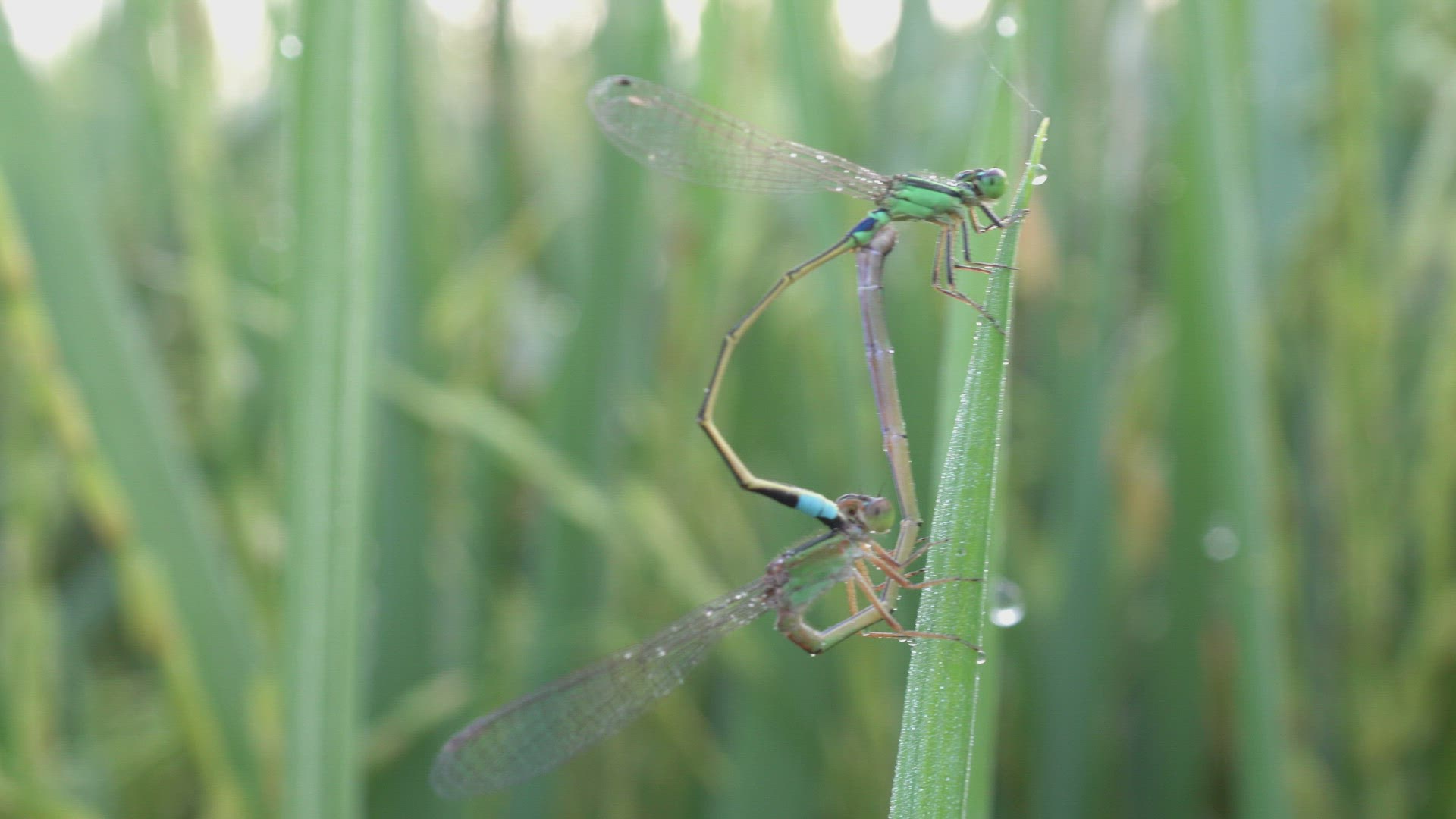 Damselfly mating on leaf paddy field