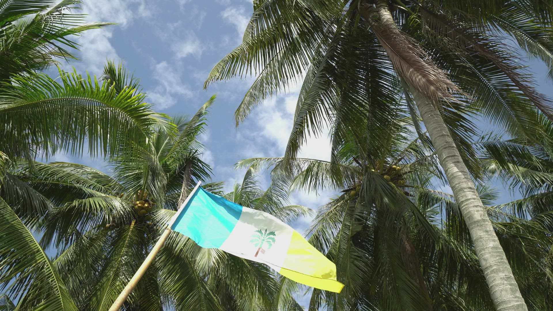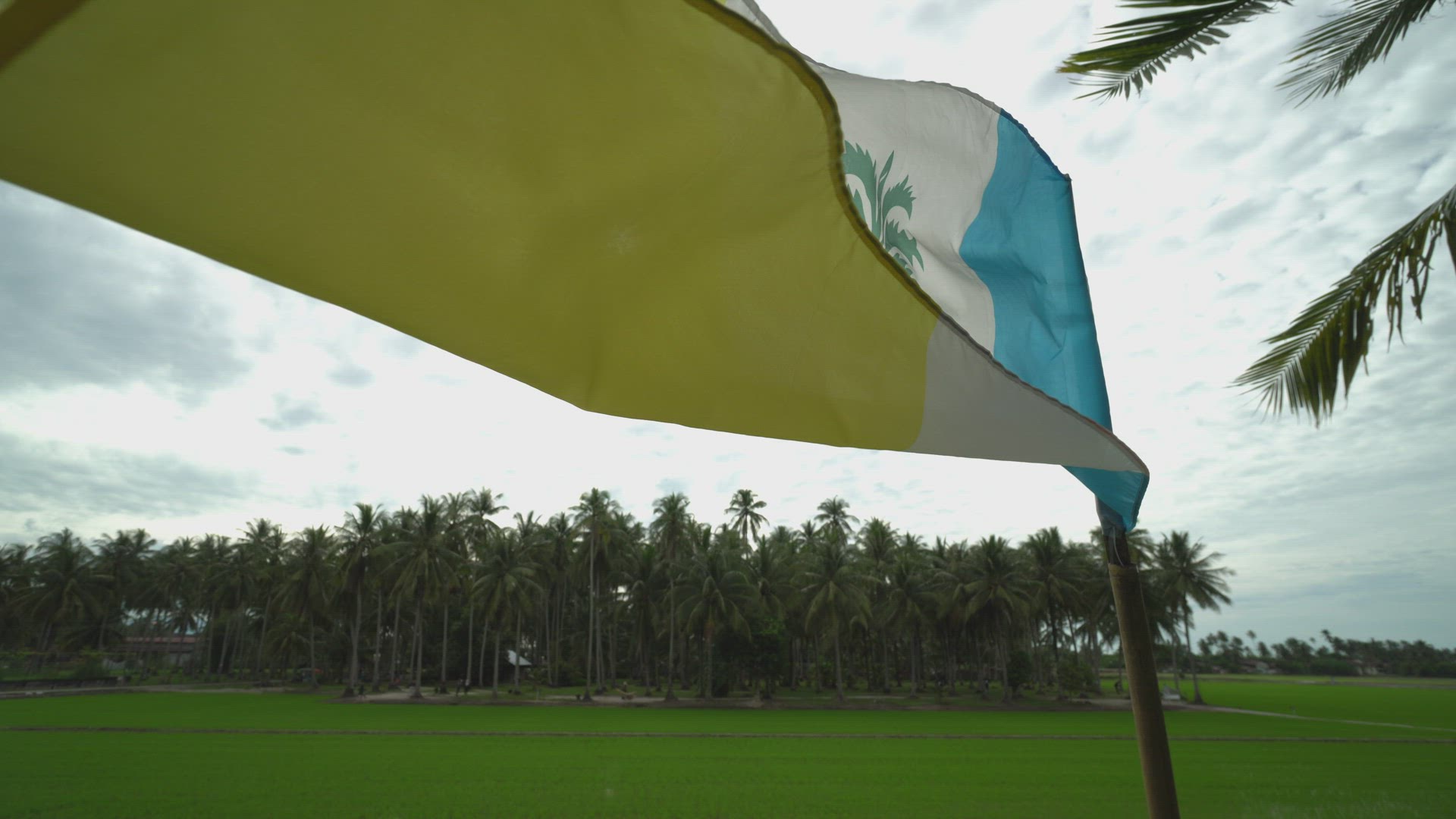 Slow motion Penang flag waving with coconut background