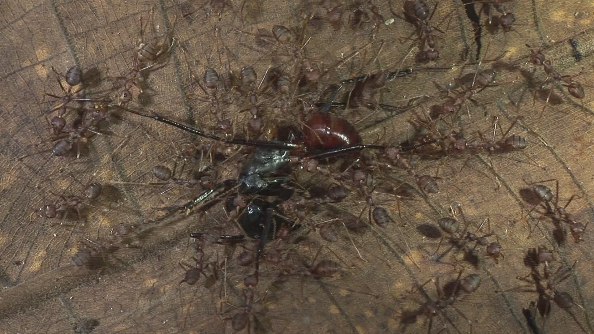 > Ant on the dead snake at floor