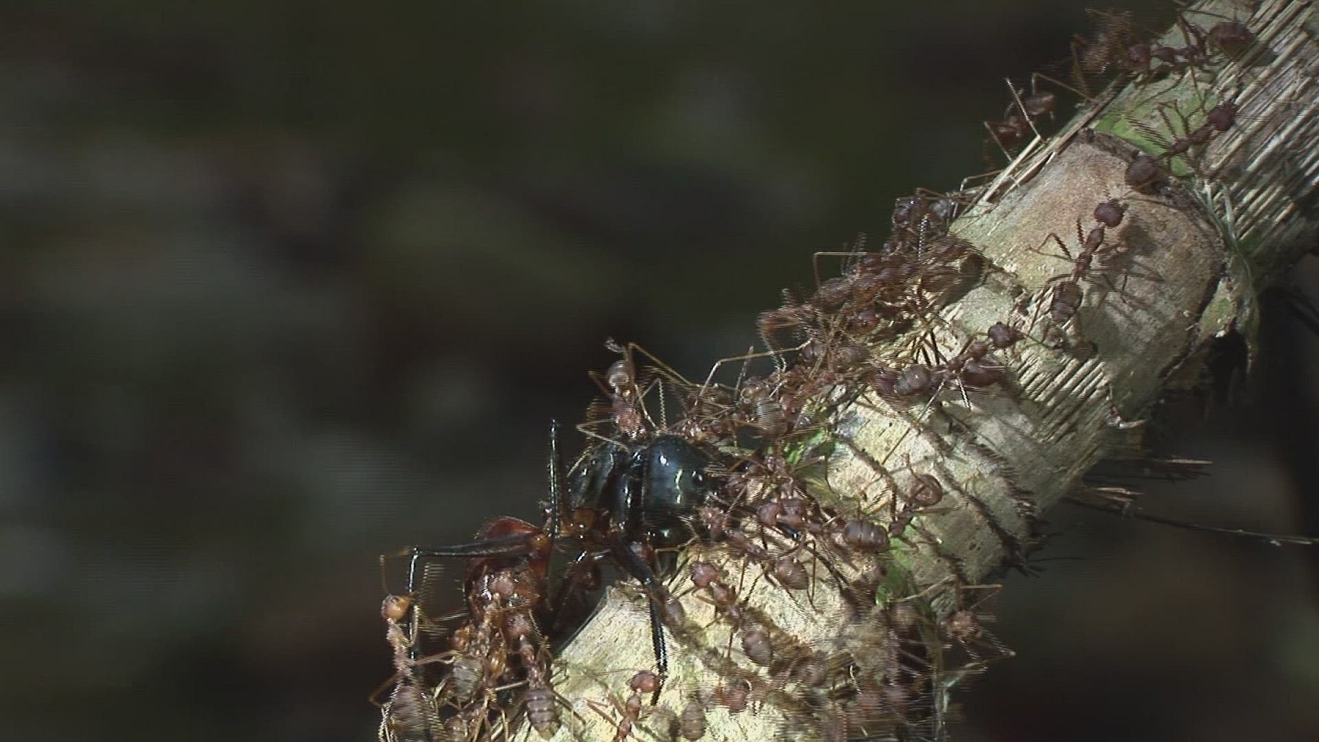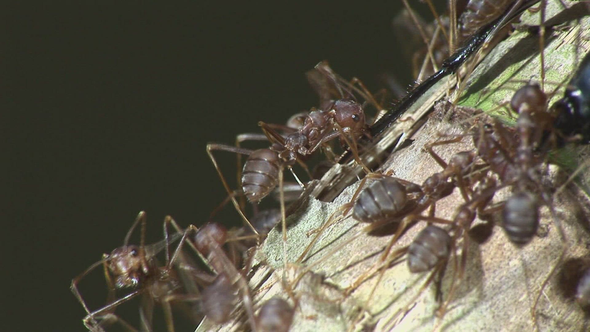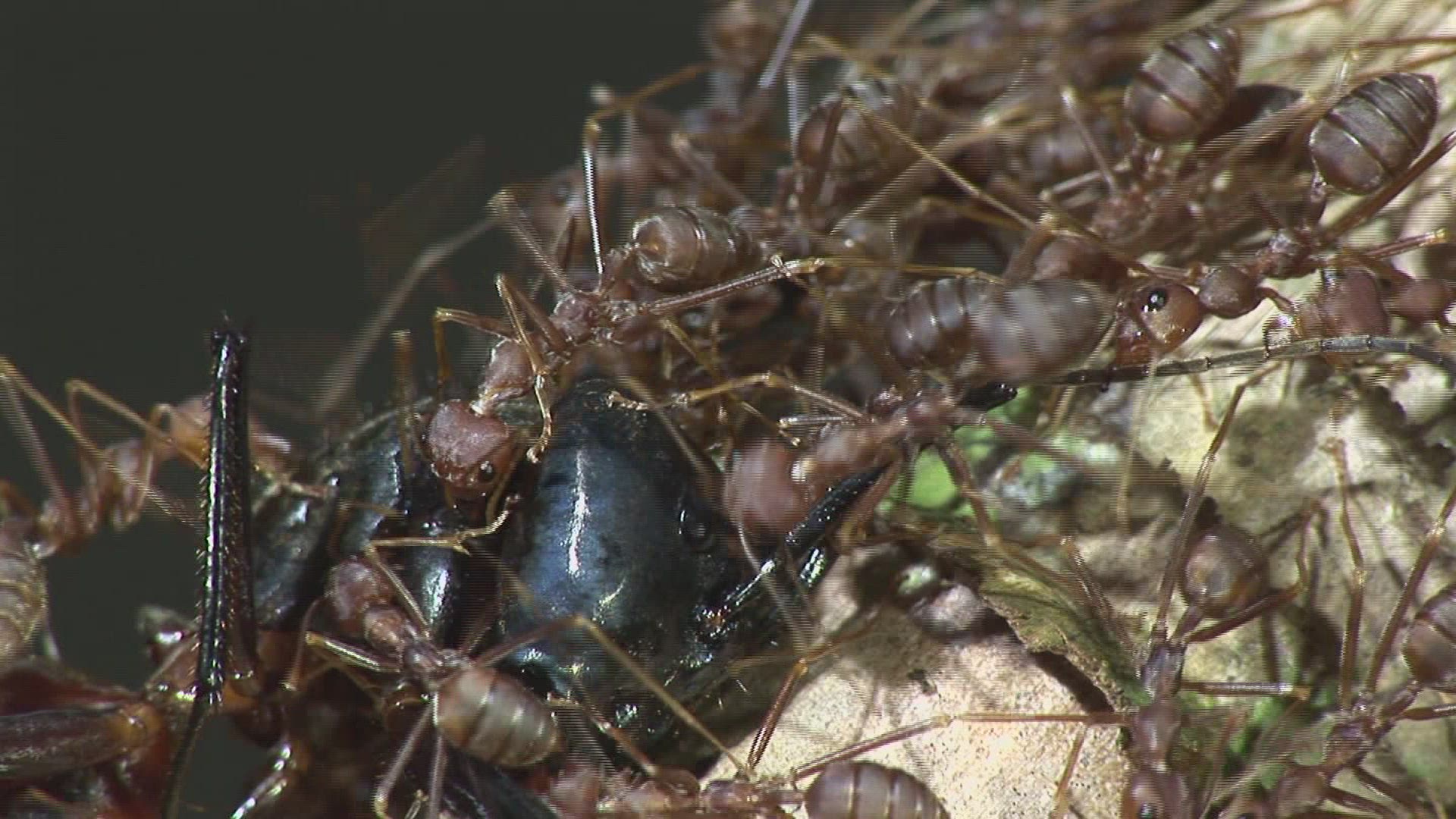 Ant on the dead snake at floor