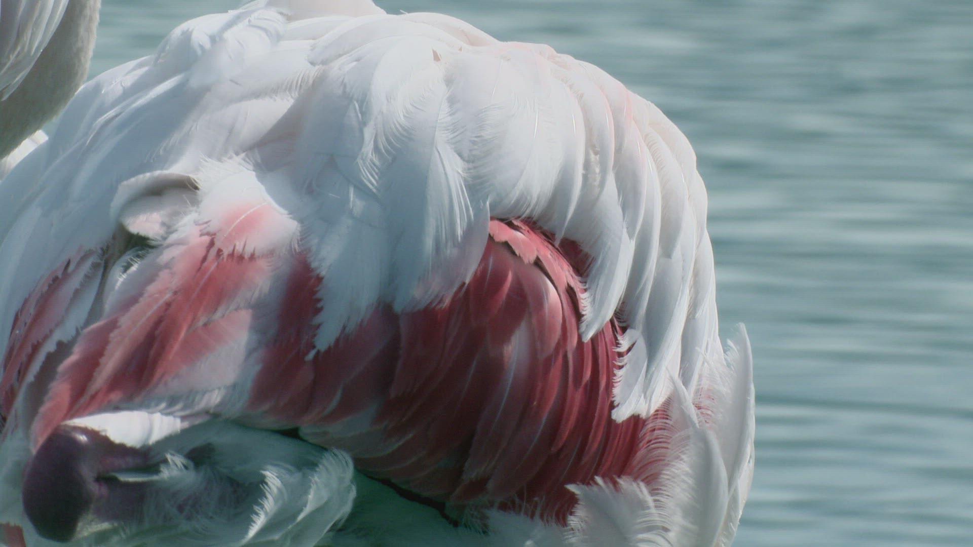 Close up greater flamingo clean feather at body and neck.