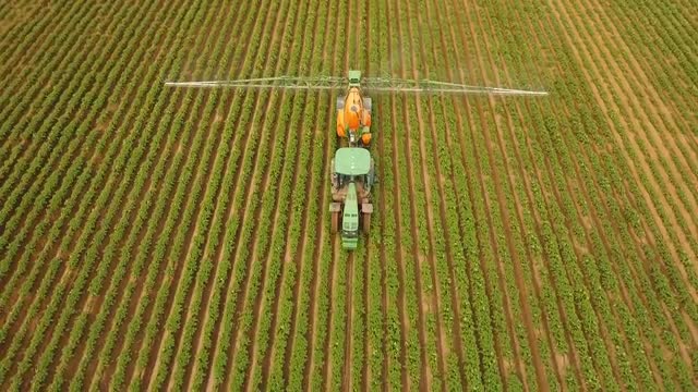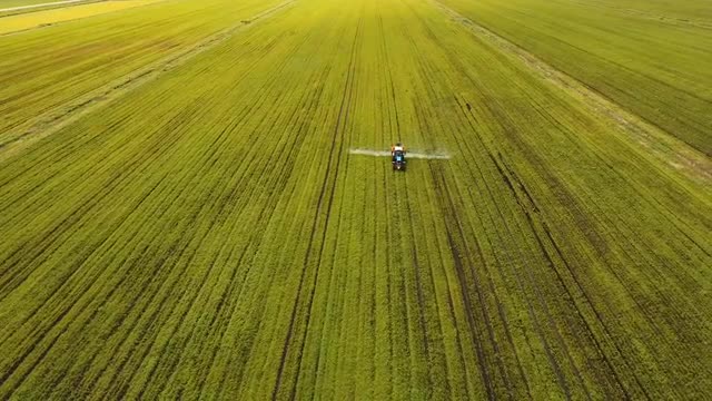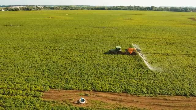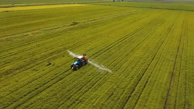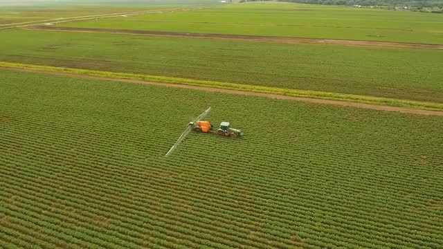 Focus agricultural spraying drone at paddy field. Drove save pesticide costs and loss.