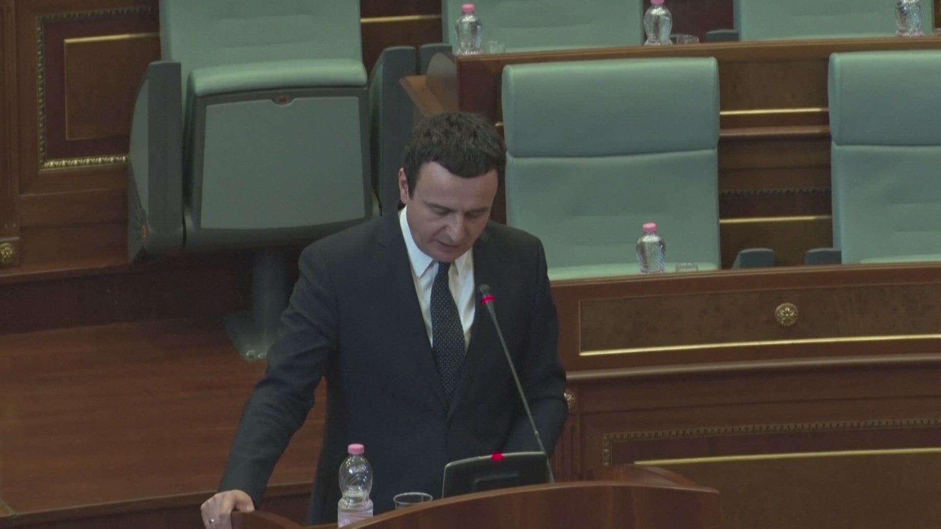 Kosovo prime minister Albin Kurti pays homage to the former US Secretary of State Madeleine Albright in front of her bust in downtown Pristina. "NATO intervention in Kosovo to stop the Serbian genocide in spring 1999 definitely has the seal of Madeleine Albright, and we will be forever grateful and thankful to her" he says. IMAGES AND SOUNDBITES