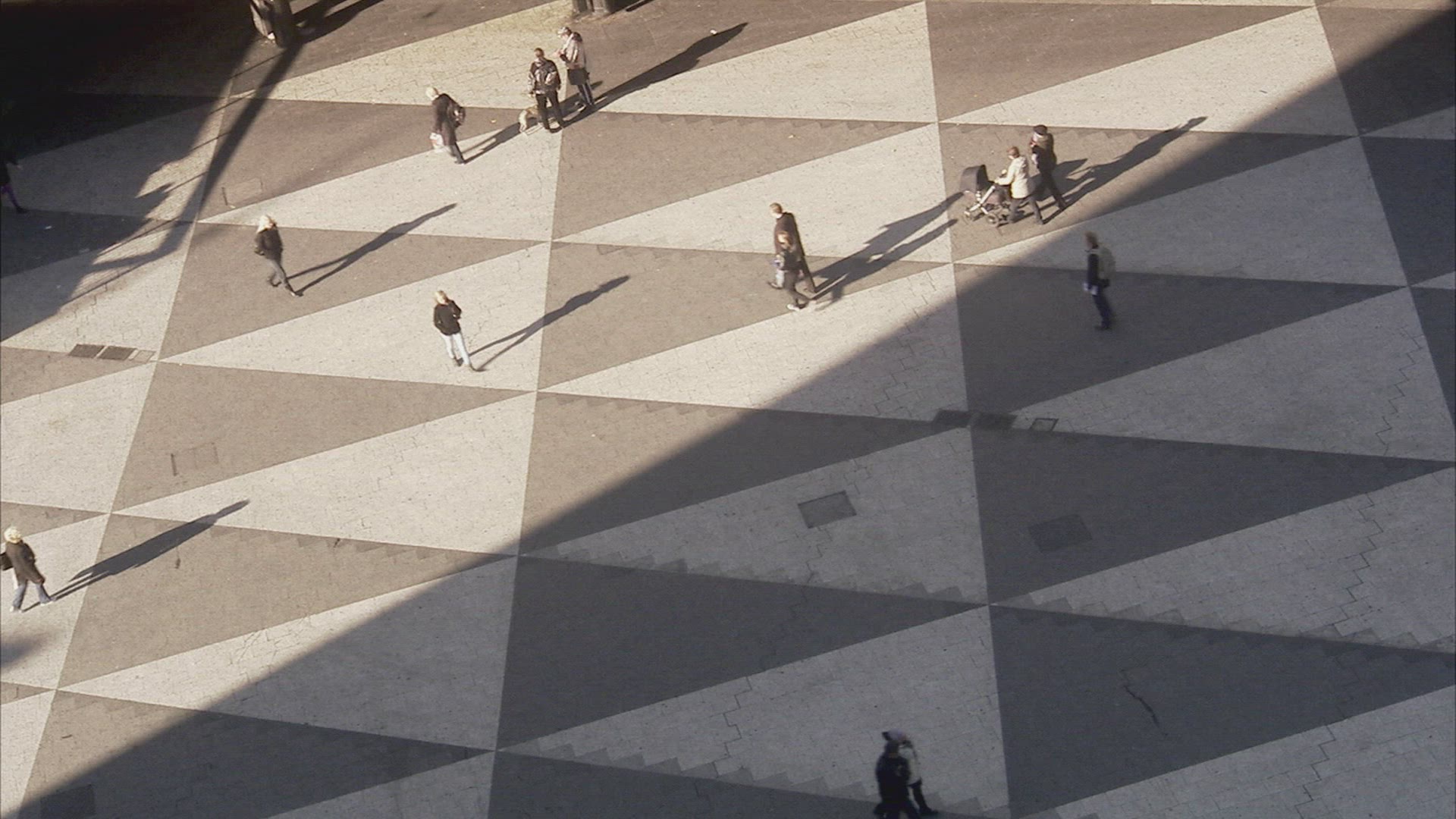 people walking - crossing Sergels Torg in Stockholm - boy chasing dove