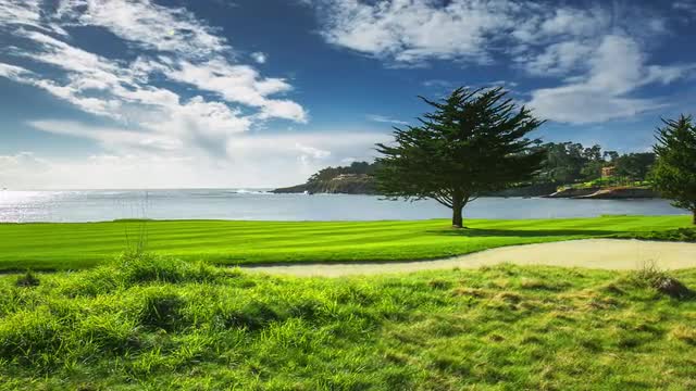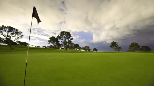 Dolly time lapse, golf course afternoon.