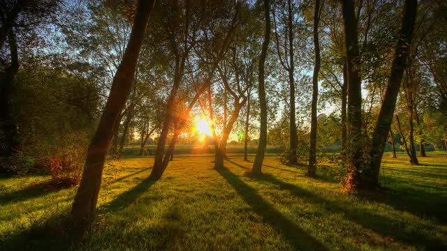 1055416 - 4K motion time lapse of moving sunset shadows in forest