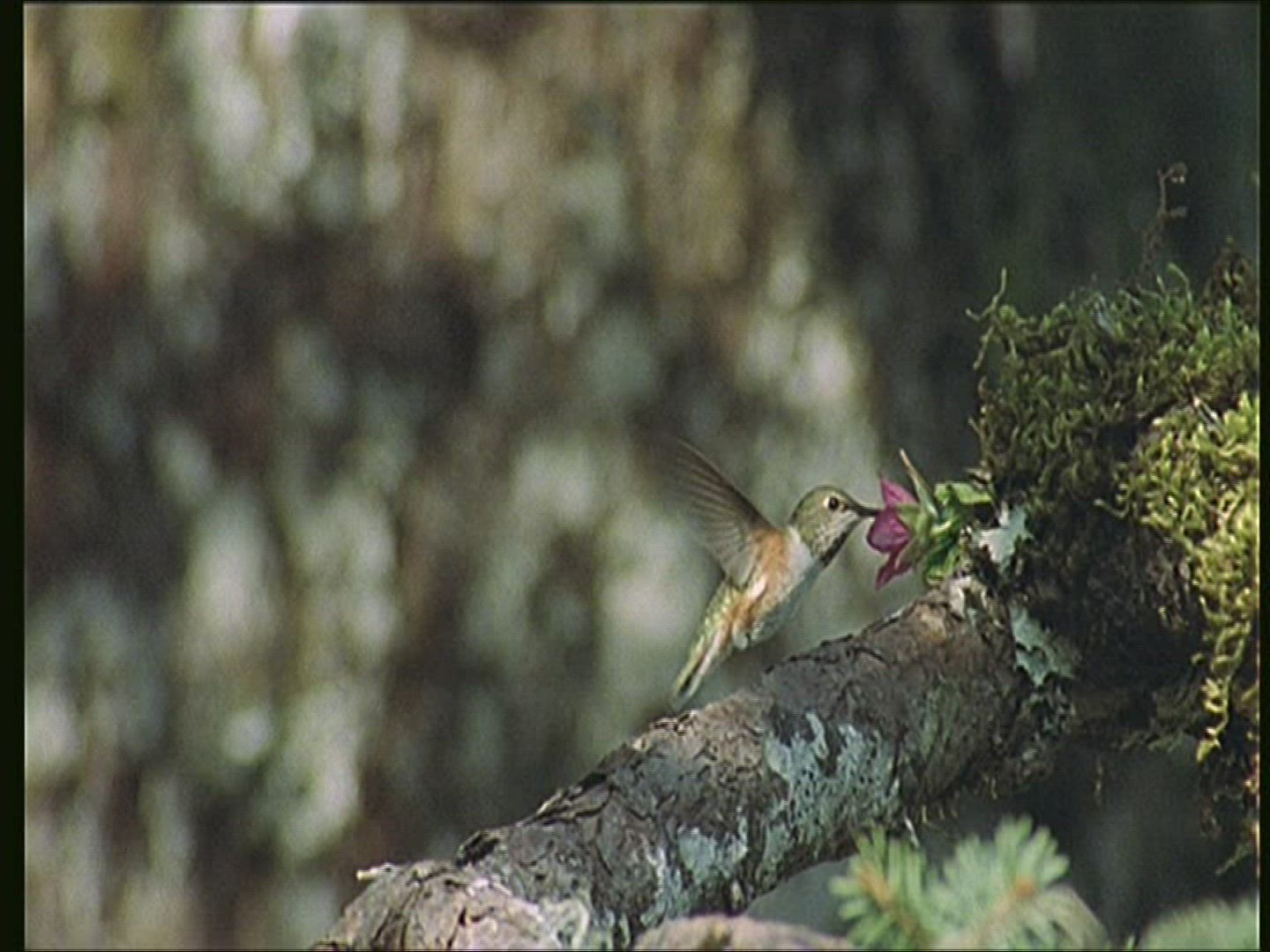 > Anna's hummingbird hunts flying insects from its perch, Southern California